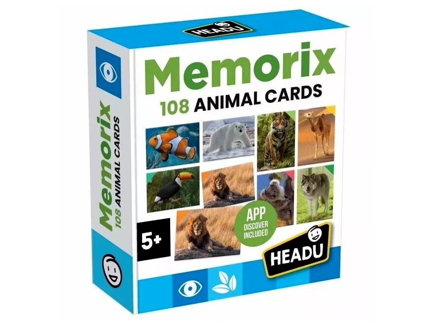 A Headu memóriafejlesztő játék 108 állatos kártyával egyszerre nyújt klasszikus párosító élményt és természetismereti felfedezést. Olyan gyerekeknek ajánlott, akik szeretik az állatokat, és közben szívesen fejlesztik memóriájukat, figyelmüket és szabálykövetésüket.