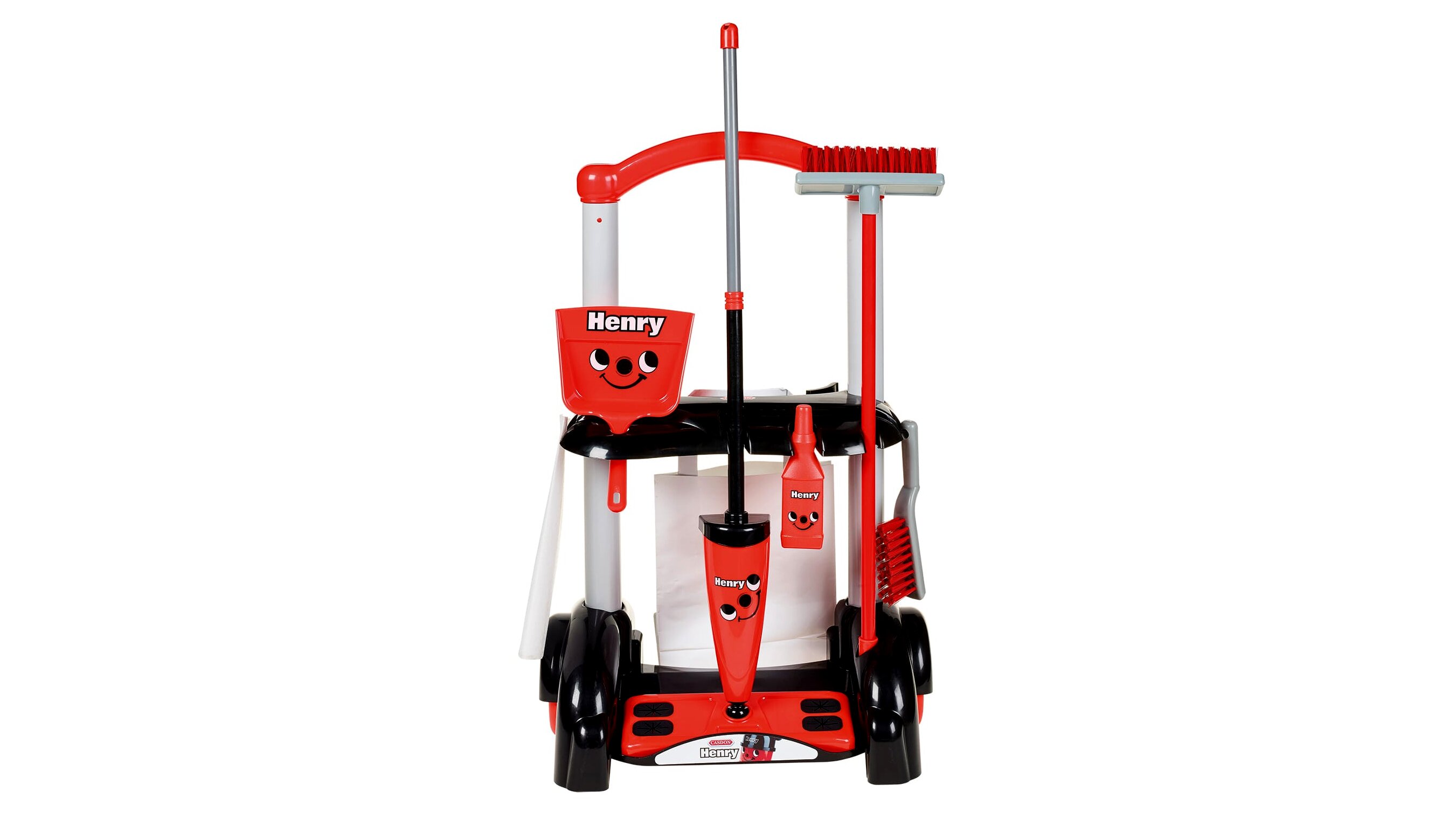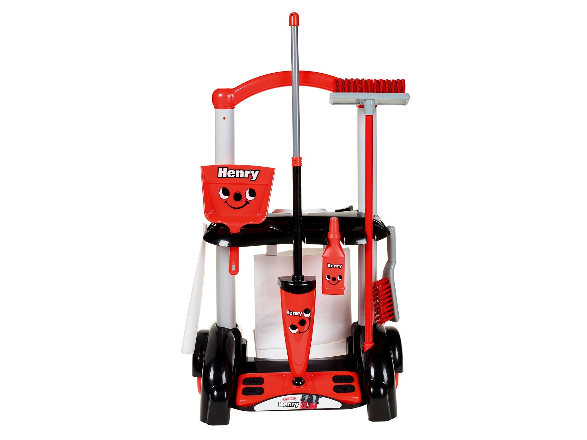 A stílusos Henry mintás takarító kocsi kiváló választás a segíteni vágyó gyerekeknek. A szett tartalmaz egy felmosót felmosófejjel, seprűt, kefét, lapátot, egy műanyag flakont, egy szemetes zsákot, és természetesen a kocsit, amire mindez könnyedén ráhelyezhető. Mindent, amire csak szüksége lehet egy takarítani vágyó gyereknek.Magassága: 19 x 38 x 58 cm