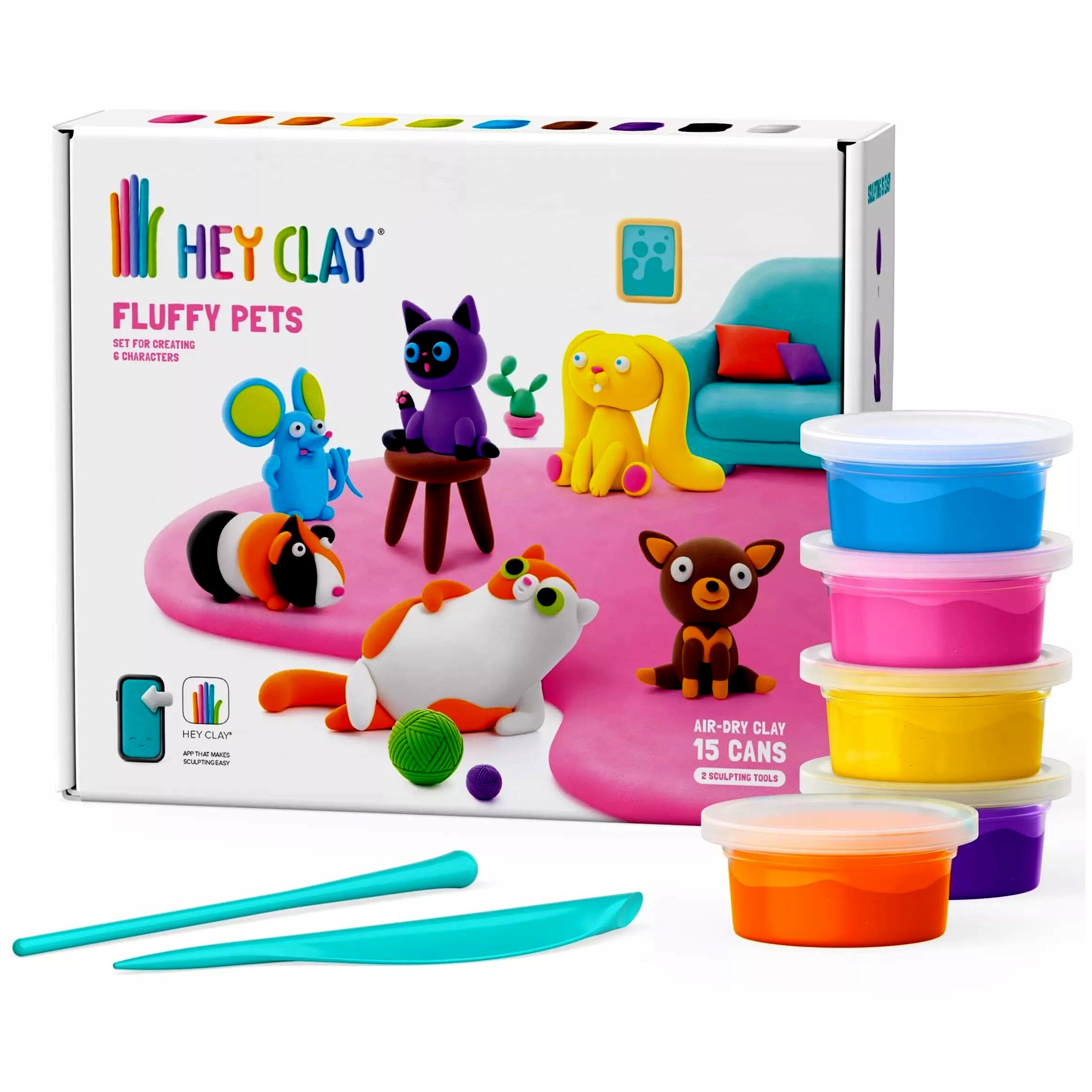 A Hey Clay gyurma szettel minden kreatív gyerek szabadjára engedheti a fantáziáját, és kedves, színes és különleges figurákat formázhat meg. Az alkotásban egy applikáció is segítségére lesz, lépésről-lépésre követheti a figurák összeállításának menetét.A könnyen formálható, rendkívül puha anyag a levegőn 24 óra elteltével megszilárdul, így az elkészült figurákkal a későbbiekben játszani is lehet. A gyurma nem ragad, nem hagy foltot a ruhán és biológiailag lebomló anyagból készült.