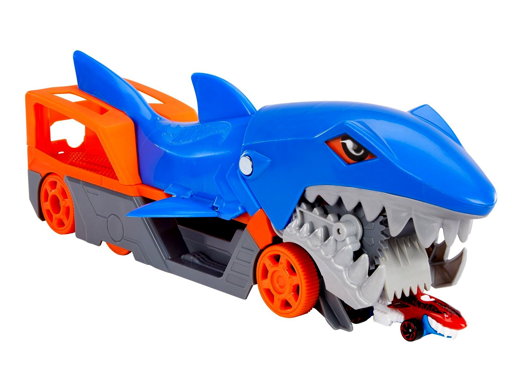 A Hot Wheels autófaló cápa készlet egy kisautót tartalmaz, de akár öt kisautó egyidejű szállítására is képes!