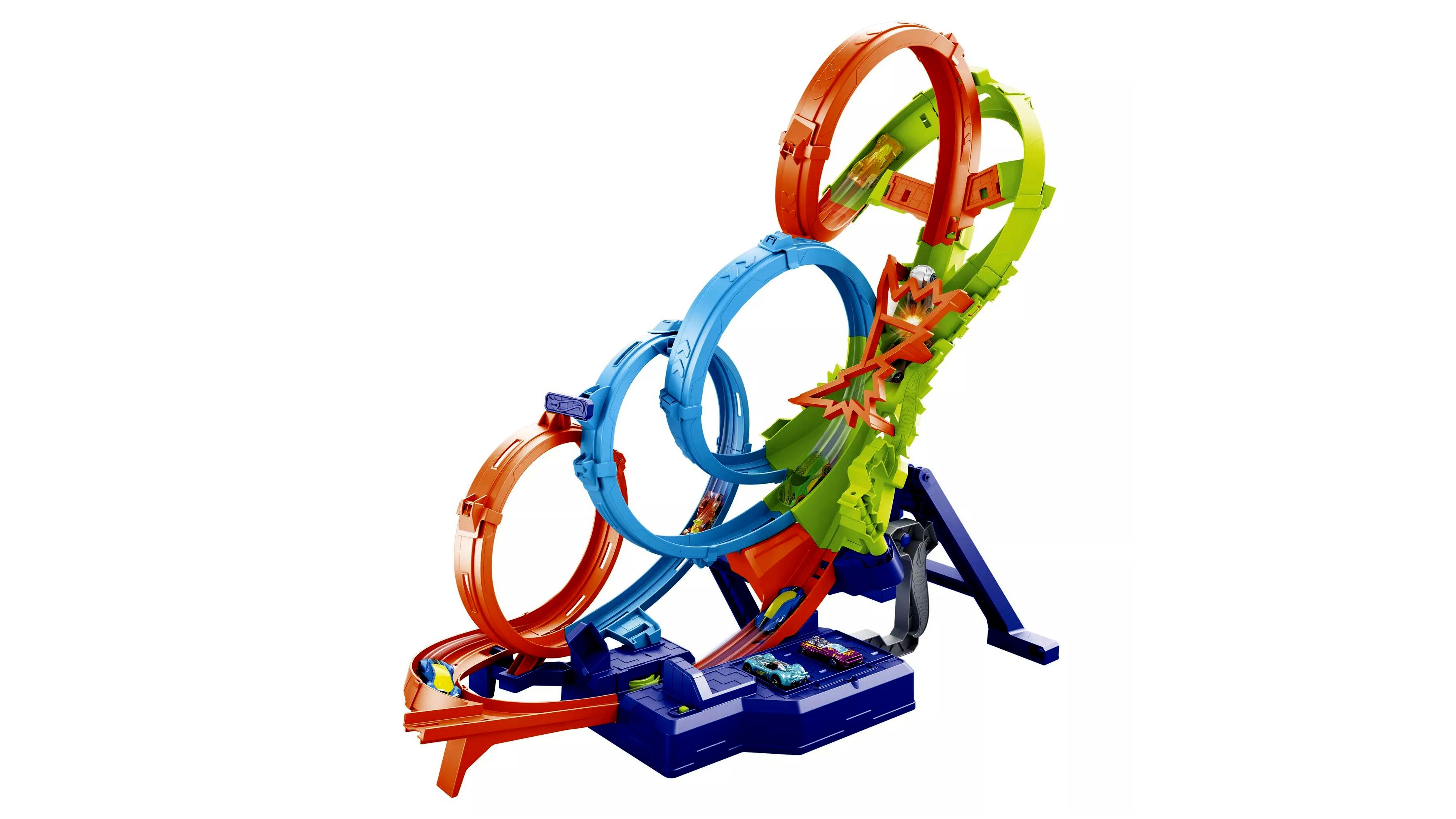 A gyerekek ezzel a készlettel mindet megtapasztalhatják. A kisautók négy fantasztikus hurkon és egy háromirányú ütközési zónán keresztül őrült akcióba hajtanak minden újabb körrel. A motorizált kilövő állandó mozgásban tartja az autókat, nagyobb izgalmak és még nagyobb kihívások érdekében. Vajon hány autó tud egyszerre versenyezni, mielőtt az elkerülhetetlen ütközés bekövetkezik? A készlet összecsukva egyszerűen tárolható, a motorizált kilövőn öt 1:64-es méretarányú játékautó parkolhat.A készletben egy kisautó található, a további járművek külön kaphatók. A színek és a díszítések eltérhetnek.