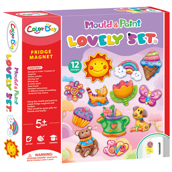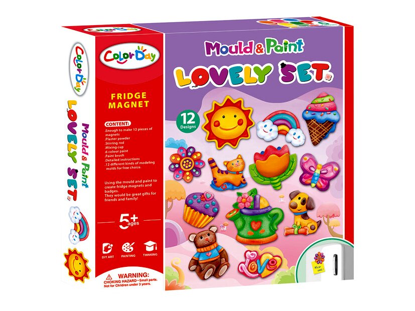 Tartalom: Tartalom: mágnescsík, gipszpor, pálca, keverő edény, 6 db színes festék, ecset, részletes útmutató (magyar).