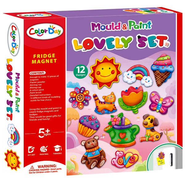 Ezzel a kreatív, lányos tematikájú hűtőmágnes készítő szettel a gyerekek egyedi hűtőmágneseket készíthetnek. A készletben minden megtalálható, ami szükséges a mágneskészítéshez. Pluszban csak egy kis kreativitásra és képzelőerőre van szükség, és már el is készülhet a napocska, szivárvány, cupcake, vagy épp Love felirat.