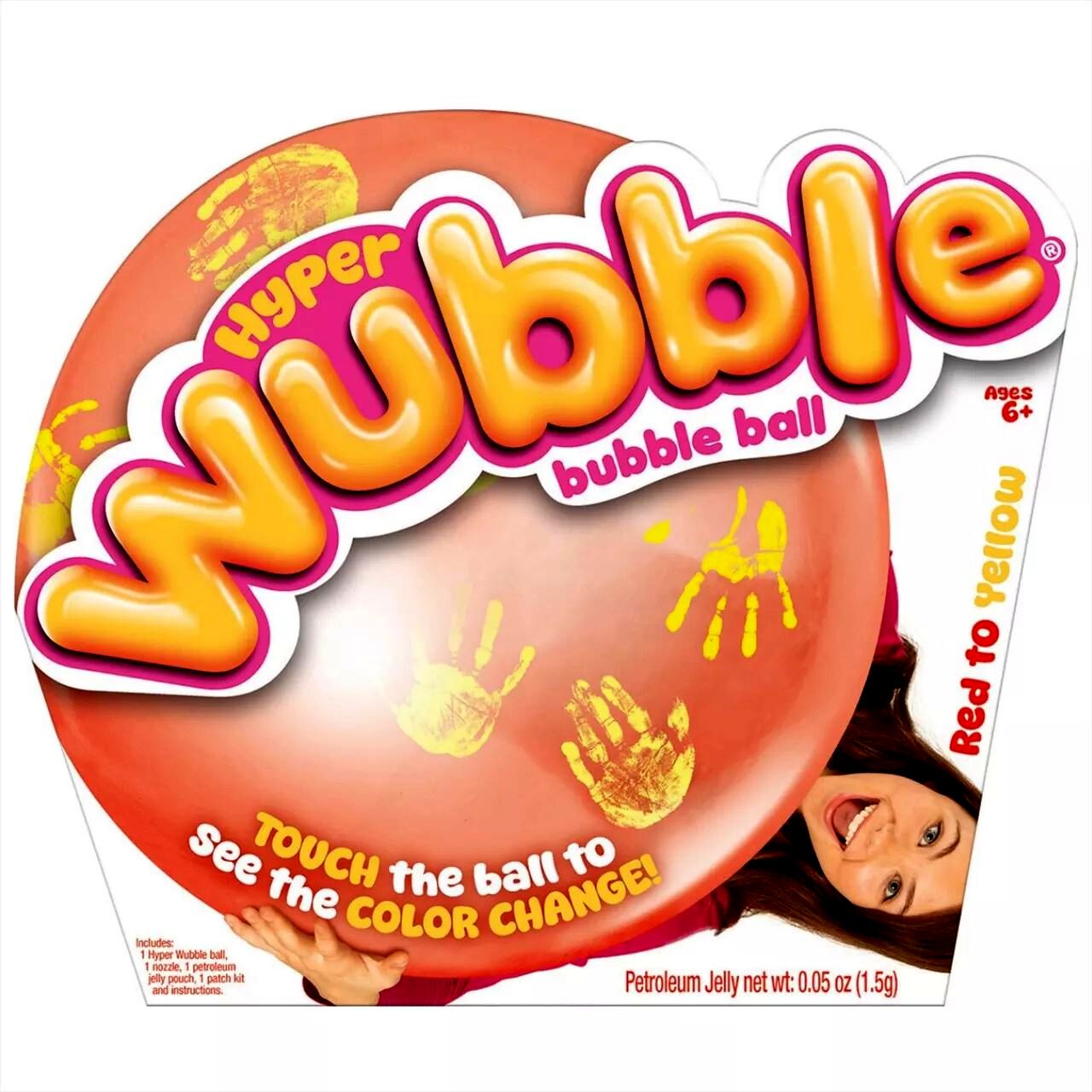 A Hyper Wubble óriásbuborék labda egy különleges, „buborékszerű” játék, amellyel mégis úgy lehet játszani, mint egy labdával: dobálható, rúgható és gurítható, miközben nyomható és nyújtható is. A színváltó felület extra vizuális élményt ad a játéknak.