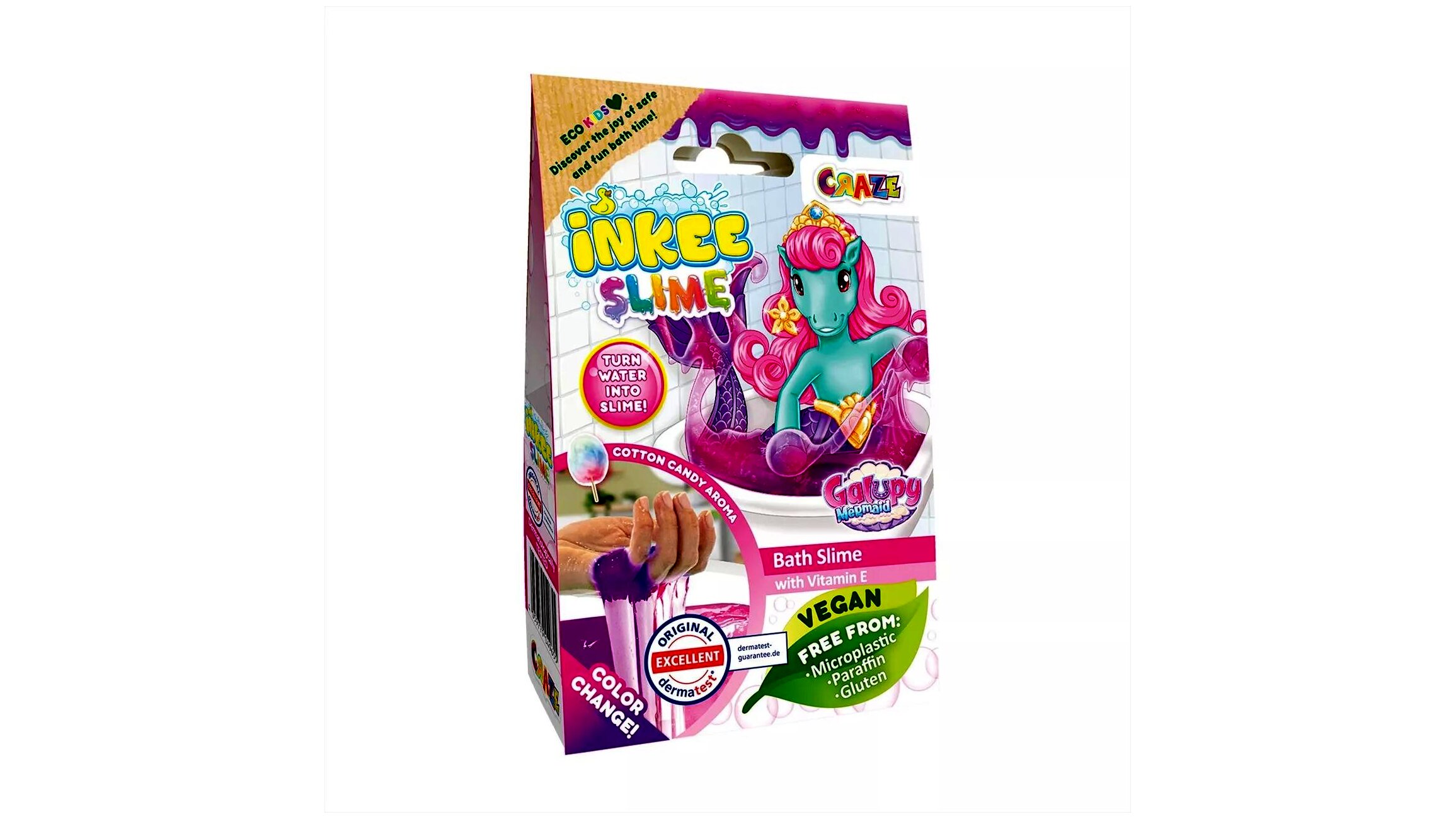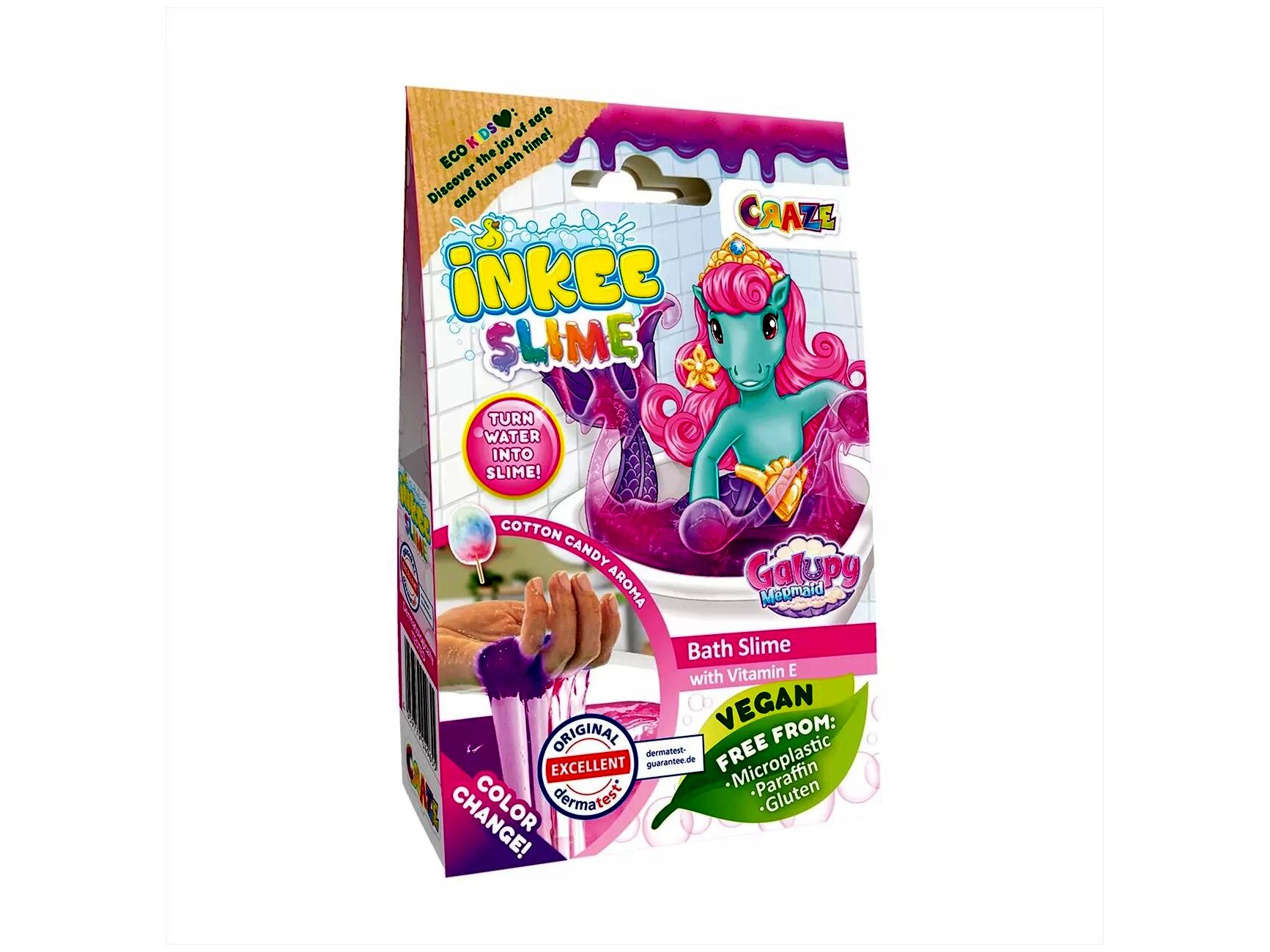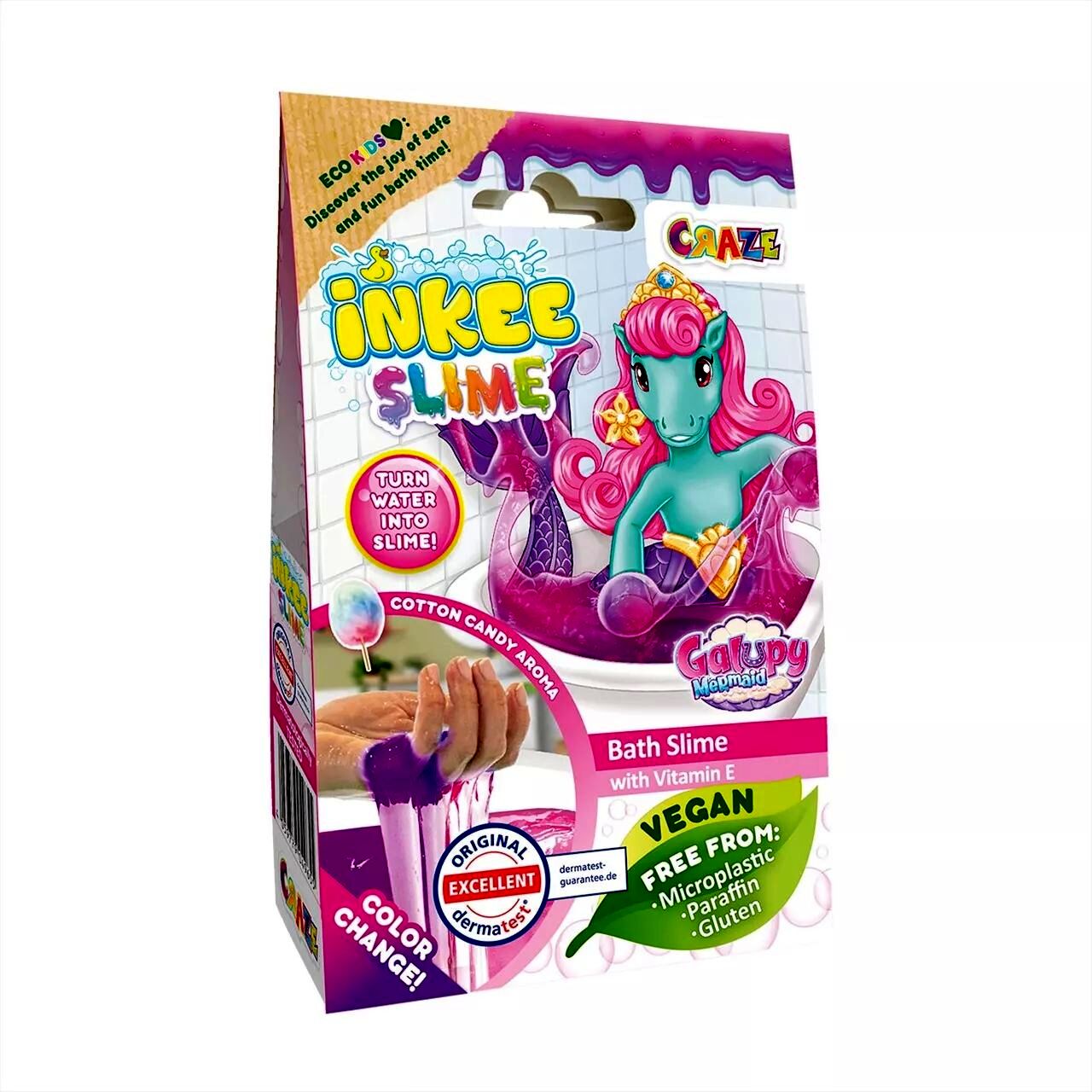 Az Inkee Galupy sellő vegán fürdő slime egy fürdővízbe szórható por, amely a vízben nyúlós, színes slime-má alakul. A mindennapi fürdést játékos élménnyé teszi, miközben bőrbarát összetevőkkel készült és kellemes vattacukor illatot ad a fürdéshez.