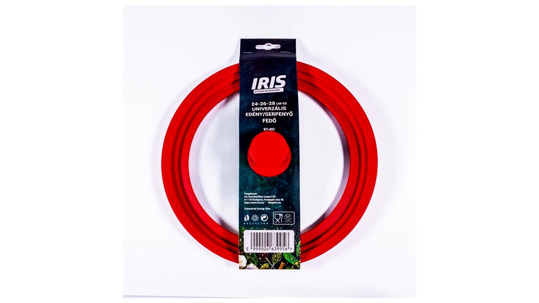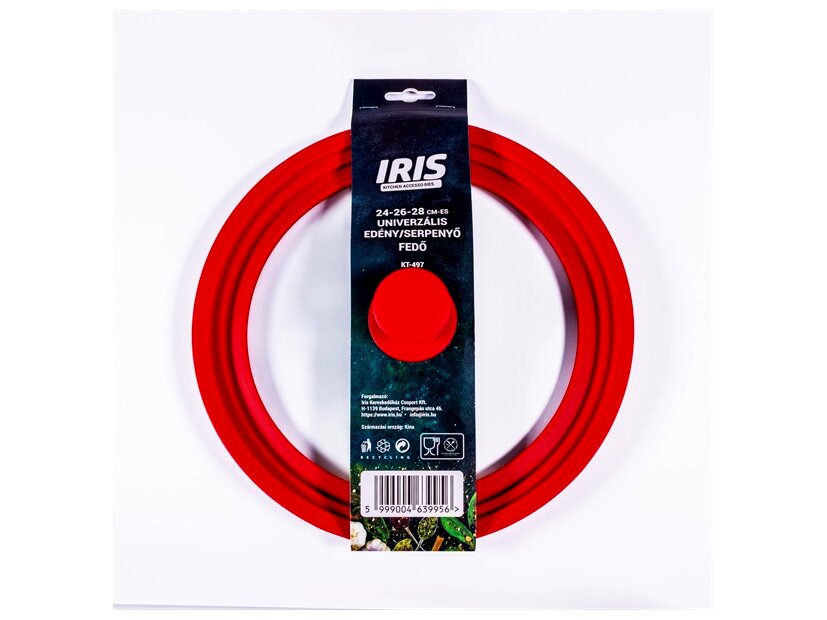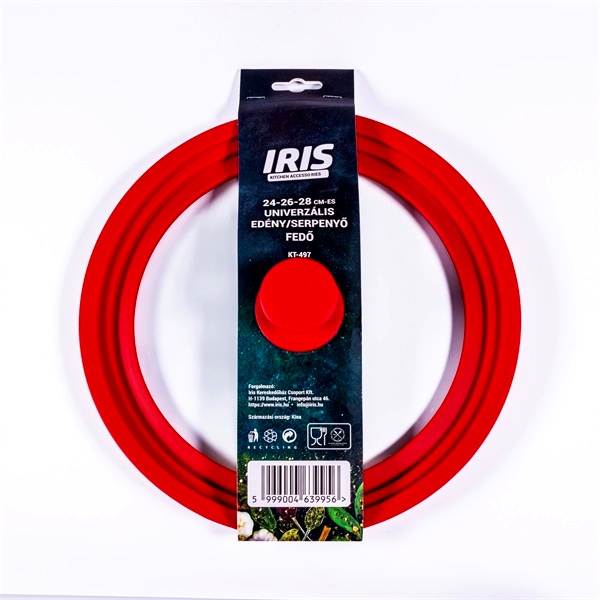 Az IRIS KT-497 egy univerzális fedő, amely 24, 26 és 28 cm átmérőjű edényekhez és serpenyőkhöz illeszkedik. Praktikus megoldás, ha több mérethez szeretne egyetlen fedőt használni a mindennapi főzés során.