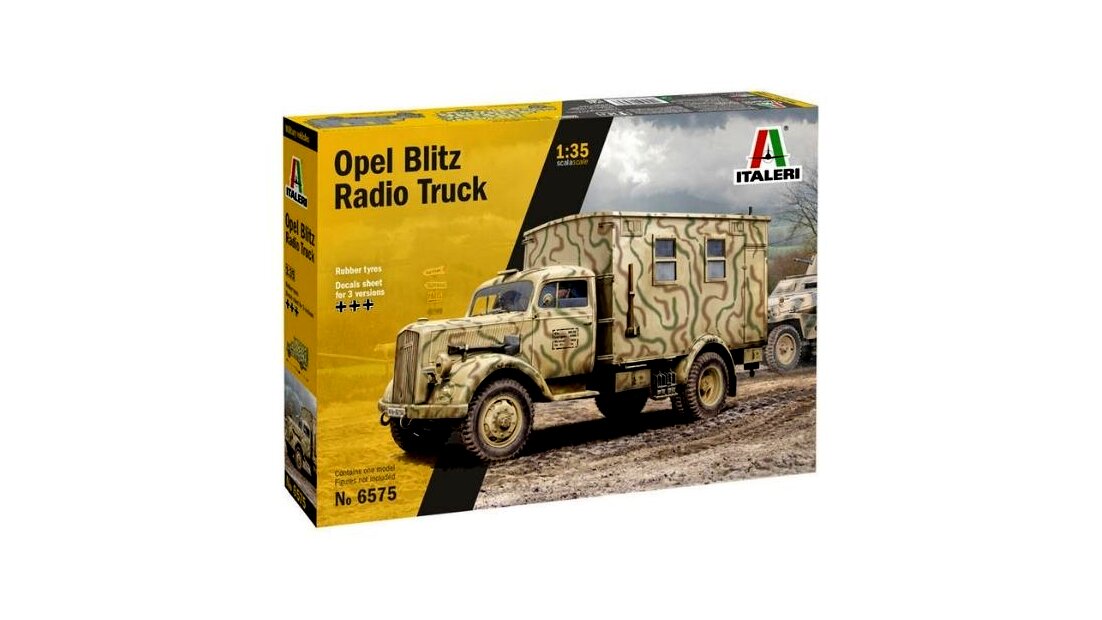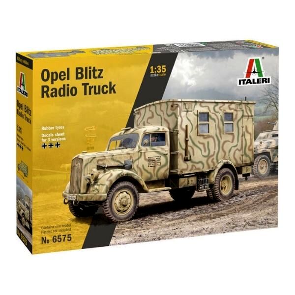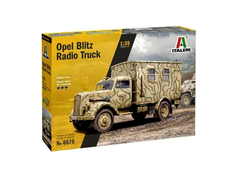 1:35 méretarányú Opel Blitz Radio teherautó makett. Opel Blitz („villám”) volt a neve. Különböző könnyű és közepes súlyú teherautókat épített a német Opel autógyár 1930 és 1975 között. A II. világháborút megelőző években az Opel Németország legnagyobb teherautó-gyártója volt. A névválasztáson kitalált Blitz nevet először az 1930 novemberében bemutatott új Opel teherautóra alkalmazták. A szállítási feladatok mellett több felépítménnyel használták. 1939-től a Blitz három tonnás változatát nagy számban használták a német fegyveres erők a második világháború alatt.