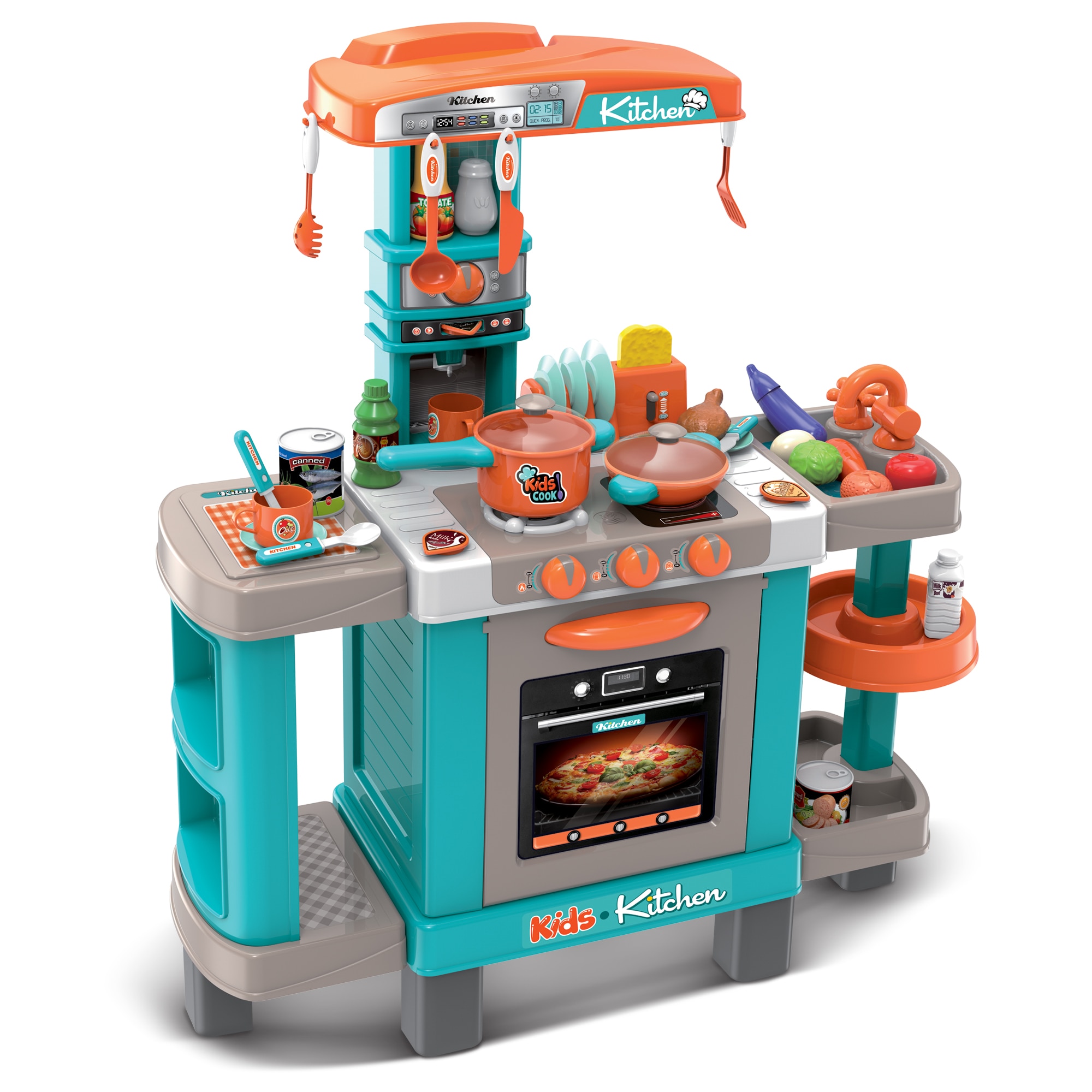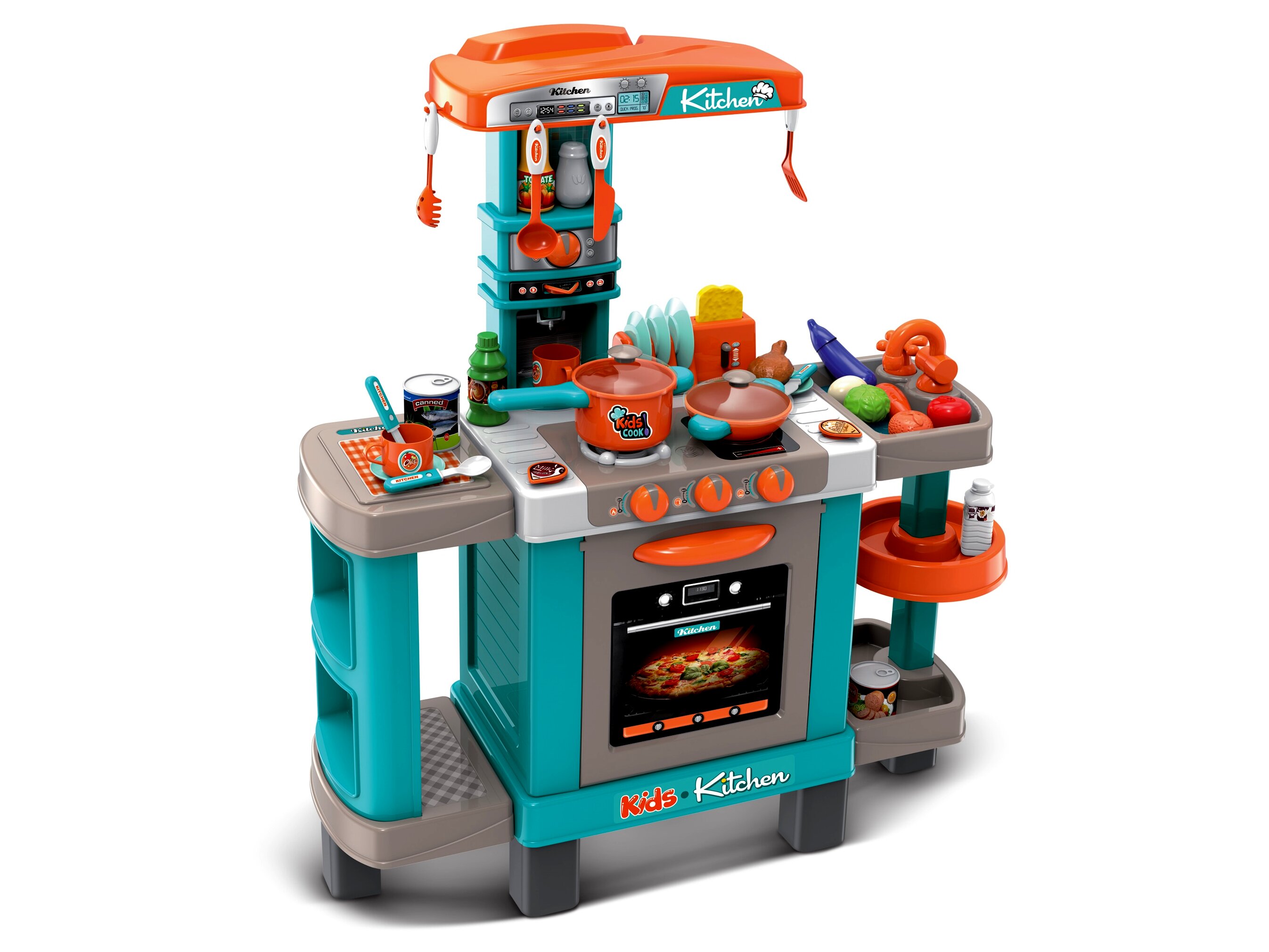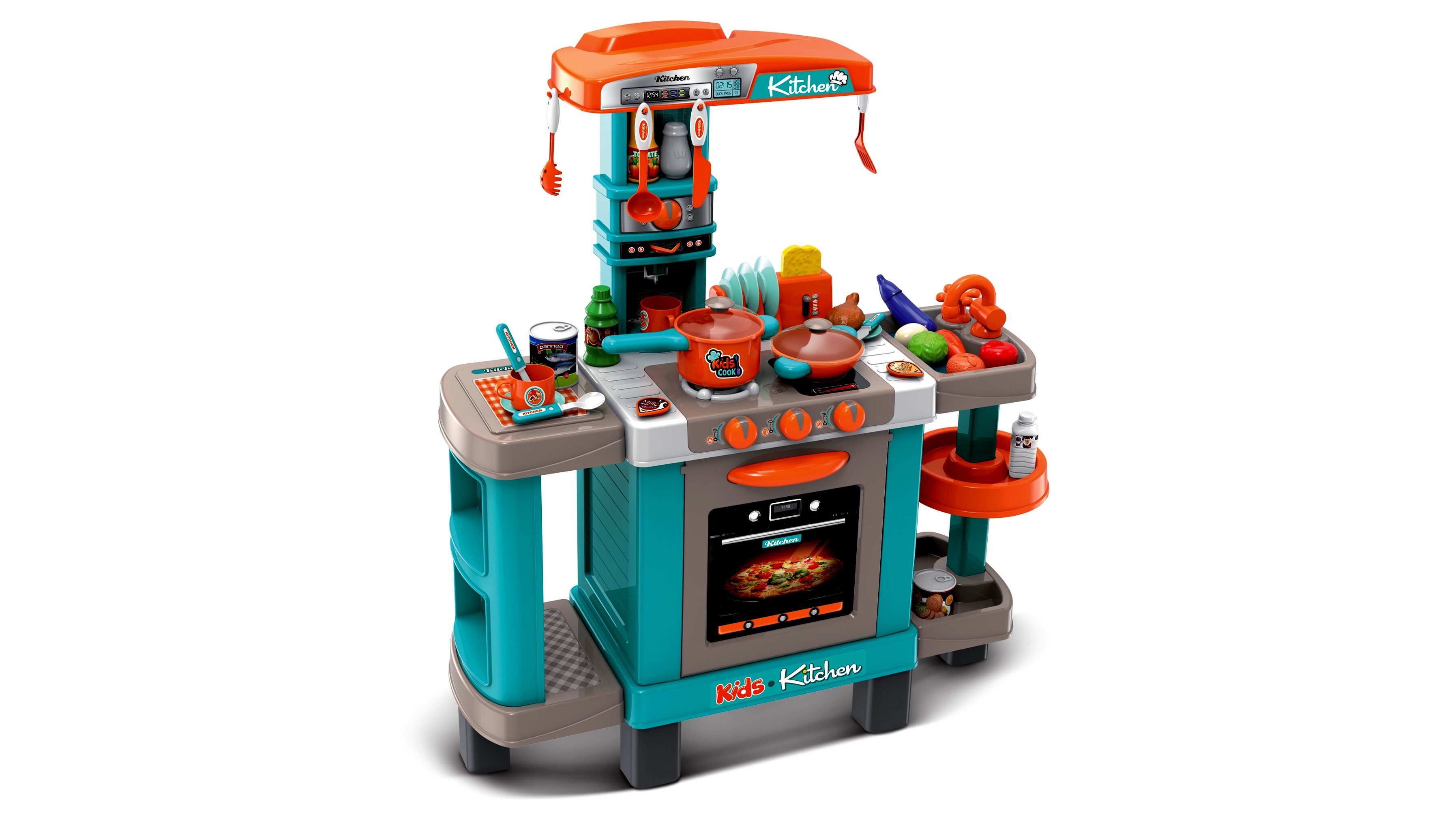 Játékkonyha fénnyel és hanggal, 39 darab kiegészítővel, kék, narancssárga