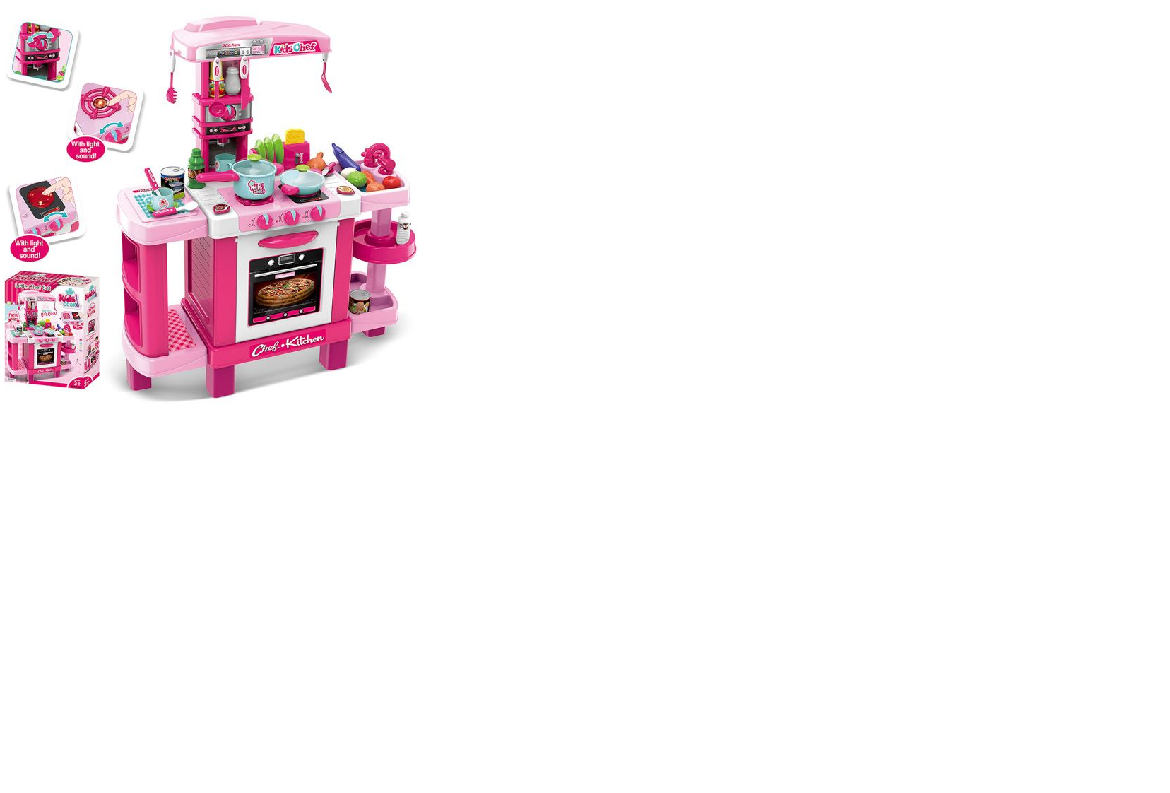 Játékkonyha fénnyel és hanggal, 39 darab kiegészítővel, rózsaszín