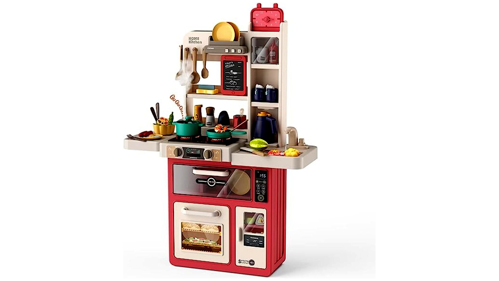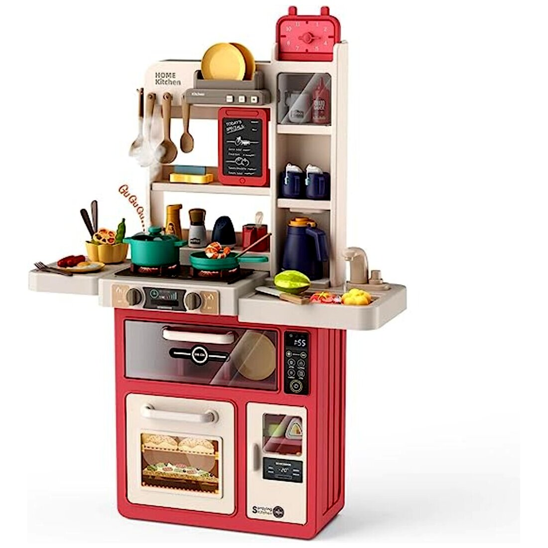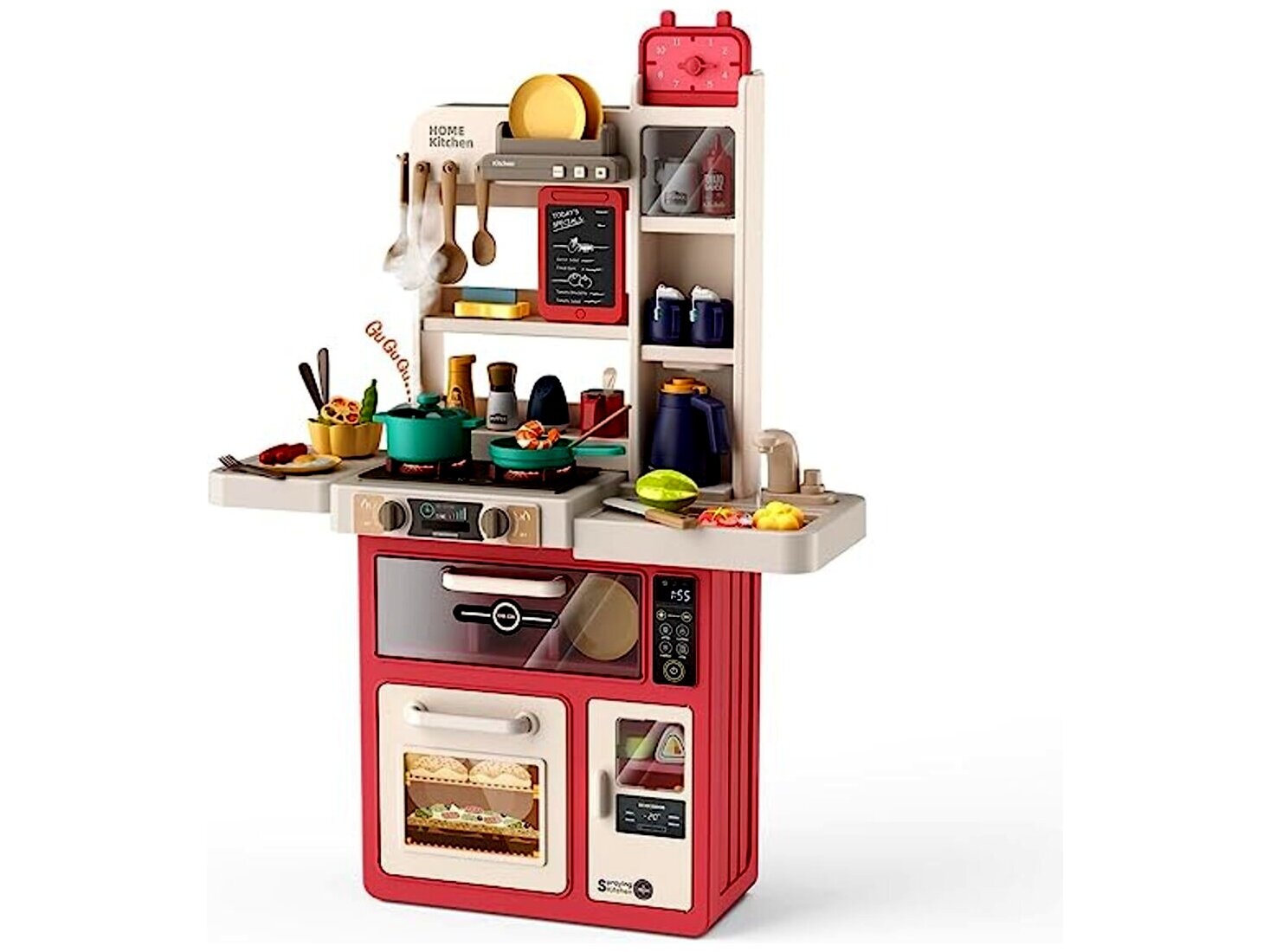 Minden apró séf álma egy jó felszerelt konyha, ebben a konyhában pedig minden megtalálható, ami szükséges a legfinomabb játékételek elkészítéséhez. A konyha számos lehetőséget és szuper funkciókat kínál a gyerekeknek, ráadásul egyszerre akár többen is odaférnek.A csomagban számos kiegészítő kiegészítő található - többek közt serpenyők, tányérok, evőeszközök, csészék, fűszertartók és sok más. A játék fejleszti a gyerekek kézügyességét és kreativitását, mindemellett a szett segítségével a kicsik megismerkedhetnek a konyhai eszközökkel és az alapvető élelmiszerekkel.