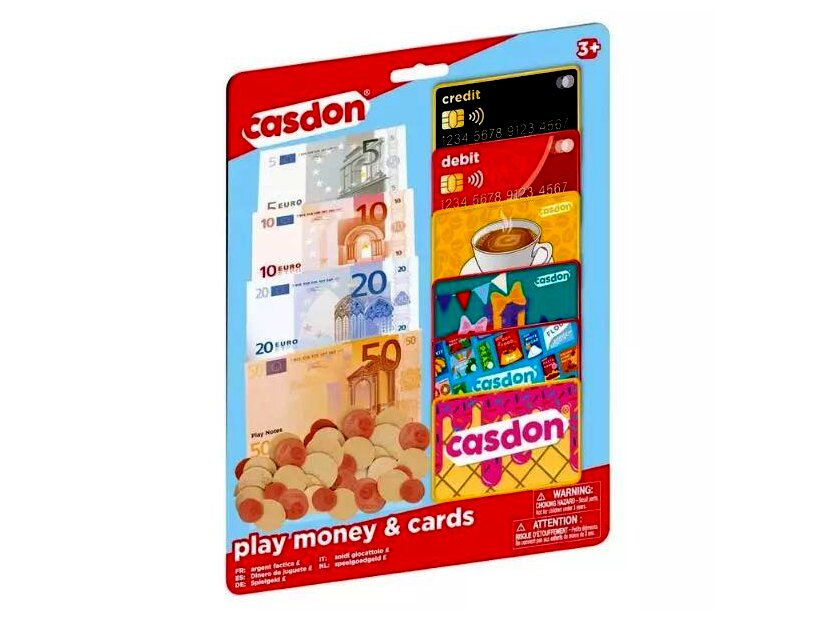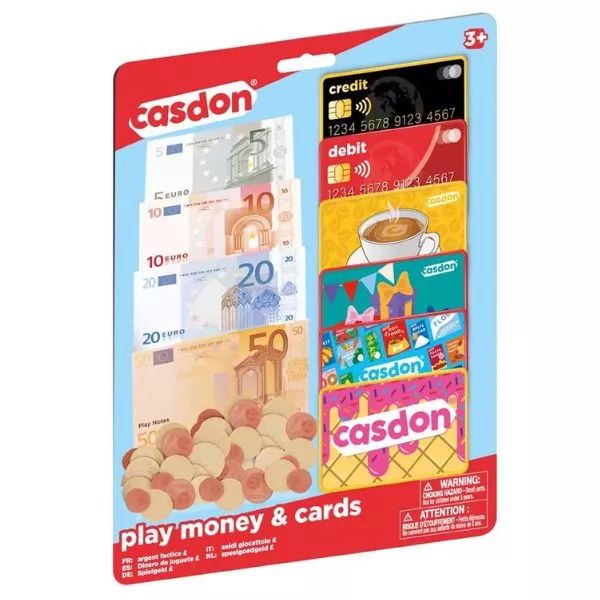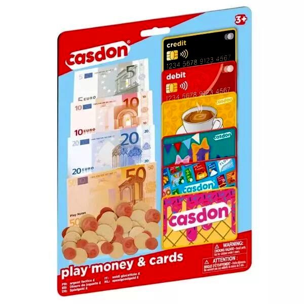 Ez a szett kiváló eszköz a gyerekek pénzügyi tudatosságának fejlesztésére és a szerepjátékok színesítéséhez. A készlet különböző címletű euró bankjegyeket és hitelkártyákat tartalmaz, hogy a kicsik élethűen utánozhassák a felnőttek pénzügyi tevékenységeit.A termék jellemzői: