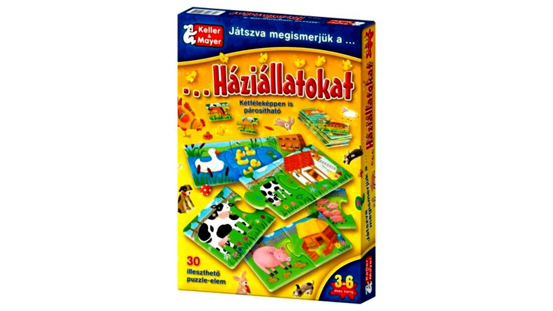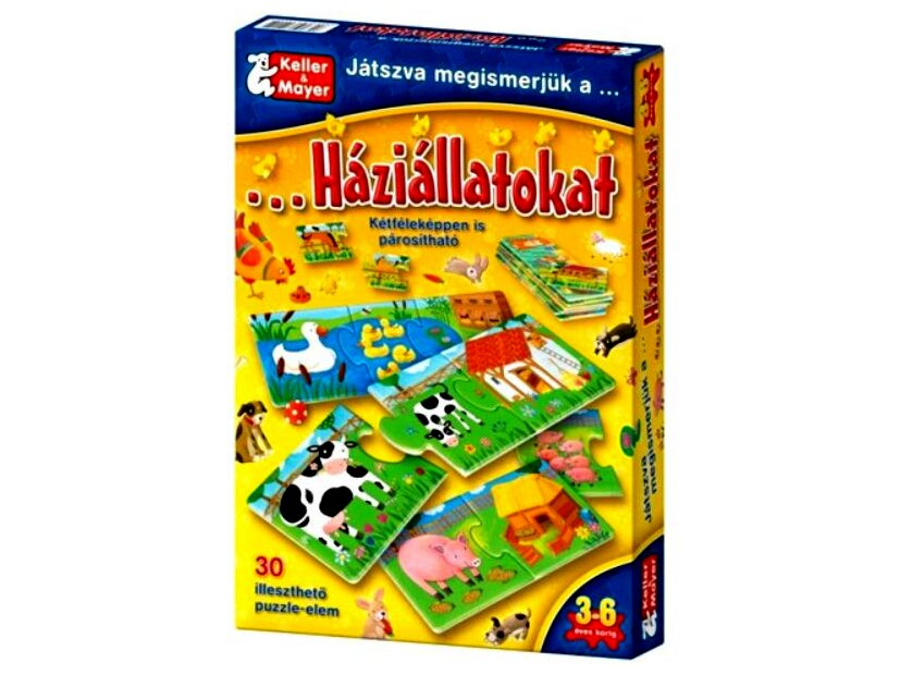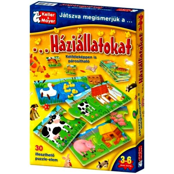 A játék célja az összetartozó elemek megkeresése és összeillesztése. Eközben a gyermek játékos formában megismeri a Magyarországon leggyakrabban előforduló háziállatokat, azok kicsinyeit, valamint lakóhelyüket. Azzal, hogy megnevezi, amit a képen lát, bővül a szókincse, javul a beszédkészsége. Meséltesse el a gyermekkel, melyik állat milyen (szomorú, vidám, mérges), mit eszik, merre szalad, stb.