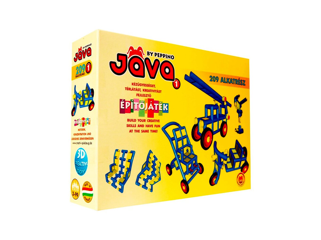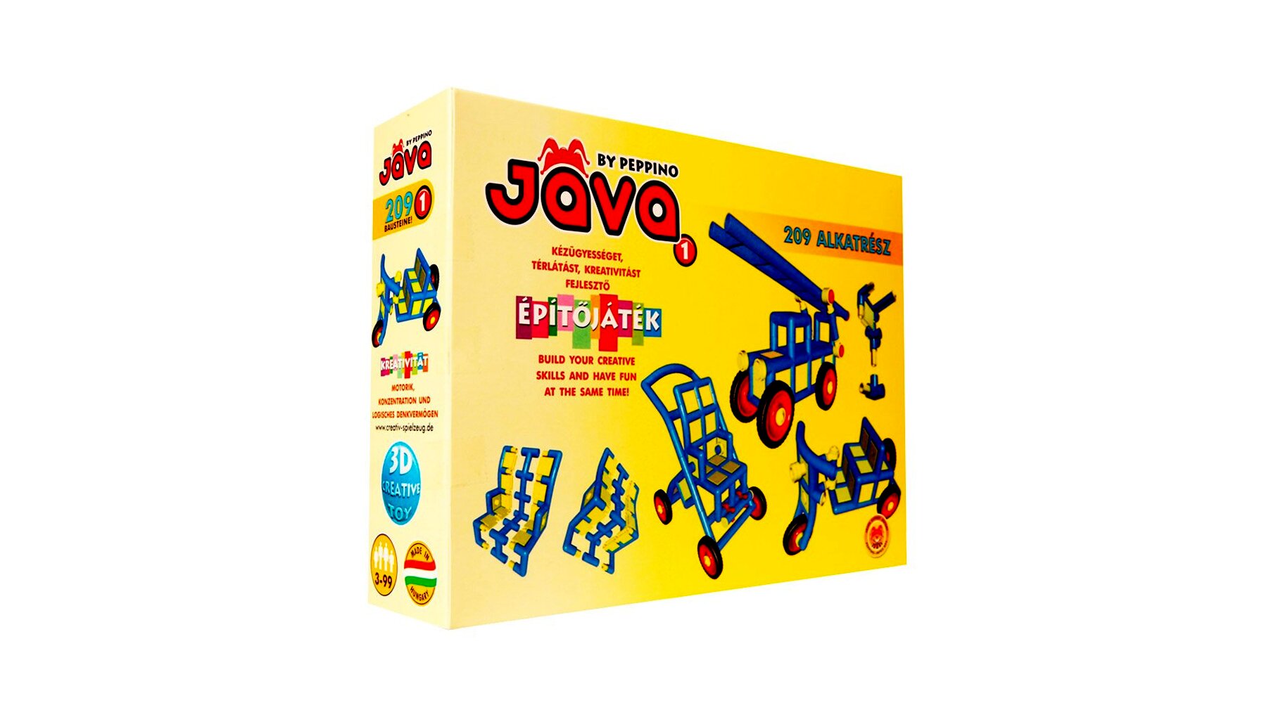 A klasszikus, teljességgel magyar, műanyag Jáva építőjáték generációk óta a gyerekek kedvenc kreatív, készségfejlesztő elfoglaltsága. A különböző formájú építőelemeknek köszönhetően a variációk száma szinte végtelen. A készlethez tartozó leírásból remek ötleteket meríthetünk. A Jáva kiválóan fejleszti a térlátást, a kreativitást, a koncentrációs készséget és a kézügyességet. A készlet 209 darab elemet tartalmaz, köztük új íves elemeket is.