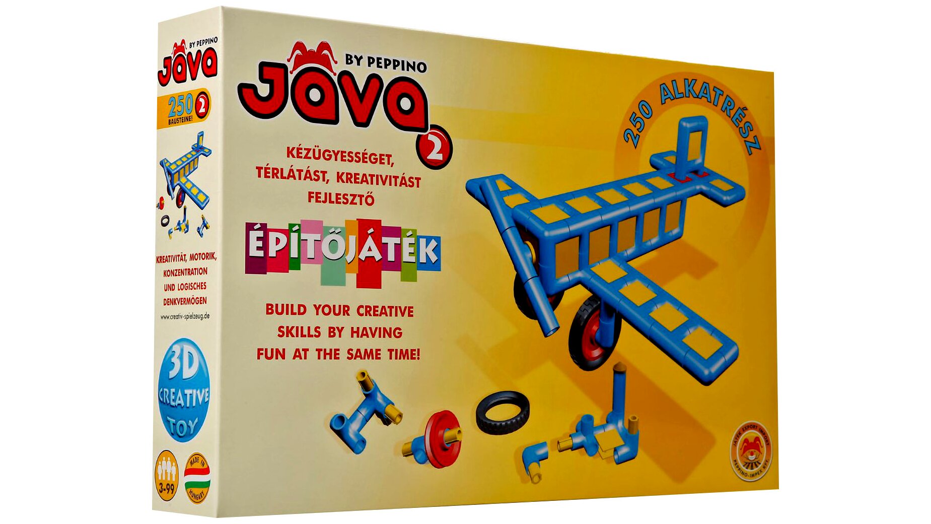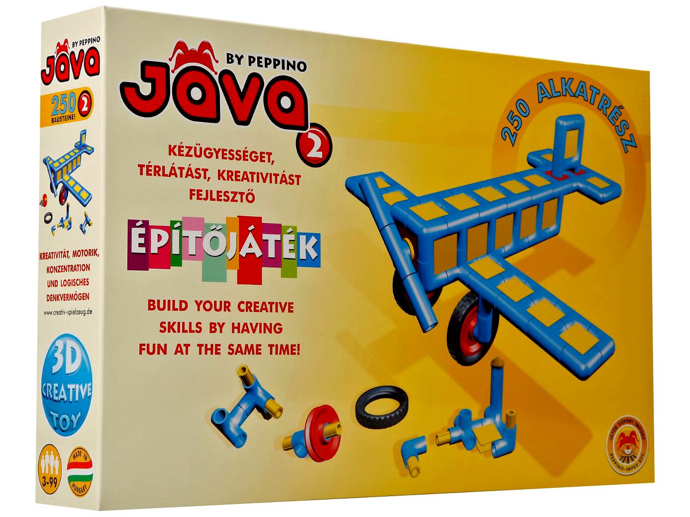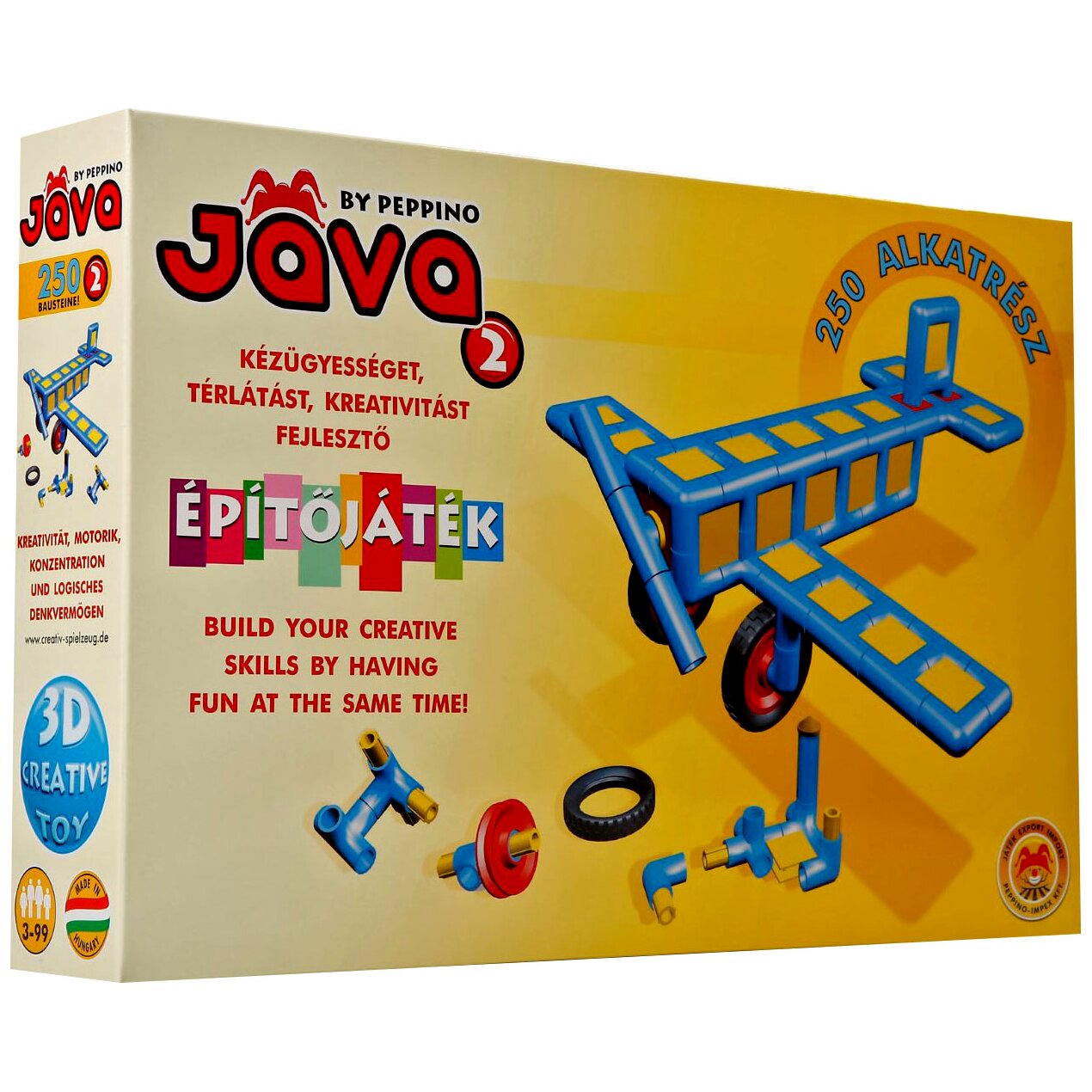 - A Jáva2 készlet 250 építőelemet tartalmaz, melyet rengeteg módon összerakhattok