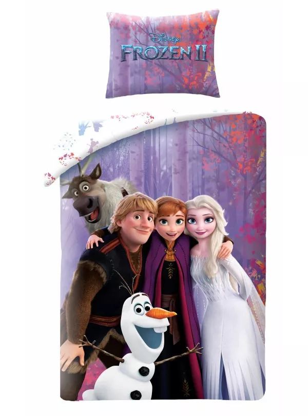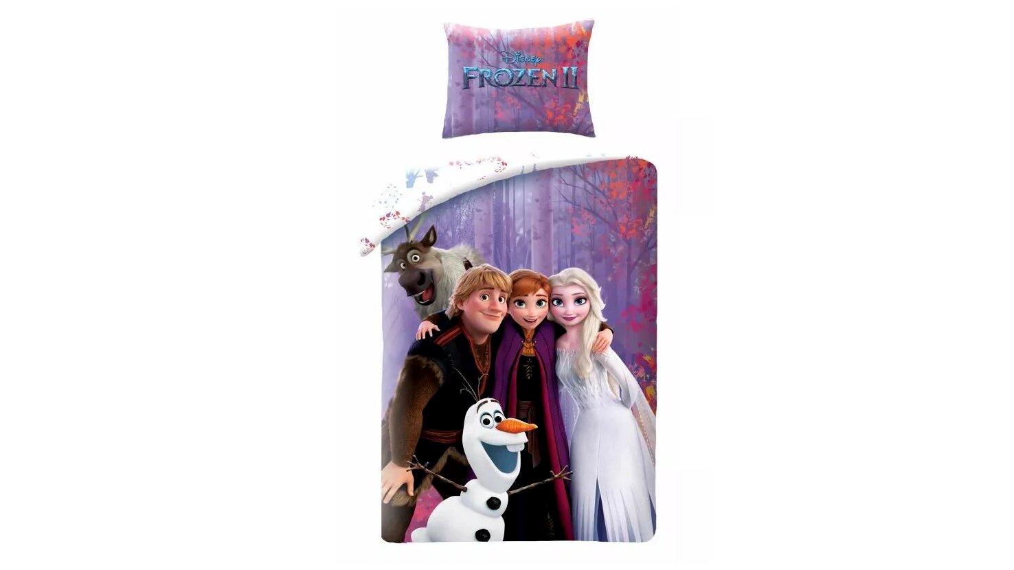 Egyszemélyes, 2 részes, Jégvarázs karakterekkel díszített ágyneműhuzat.