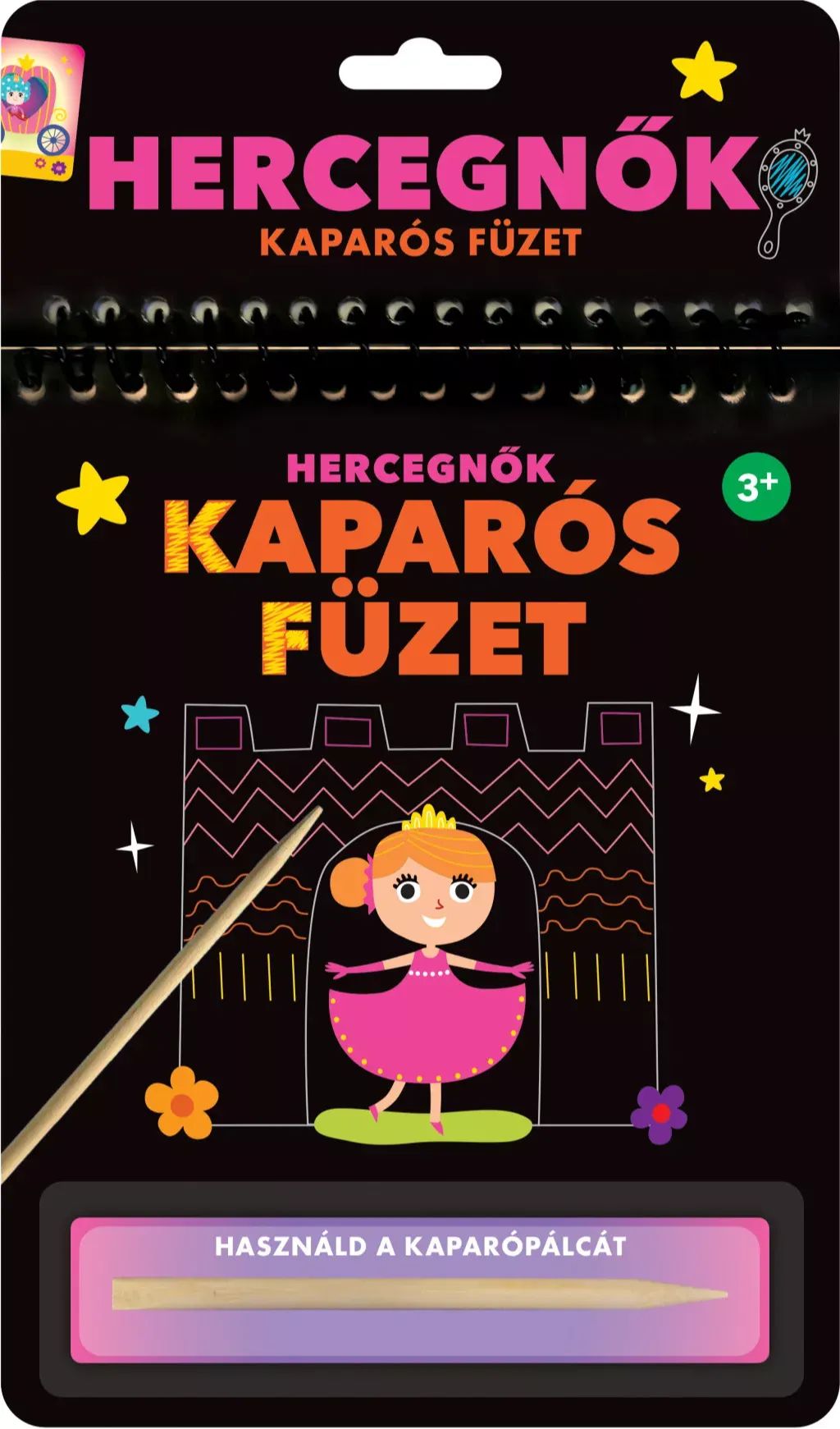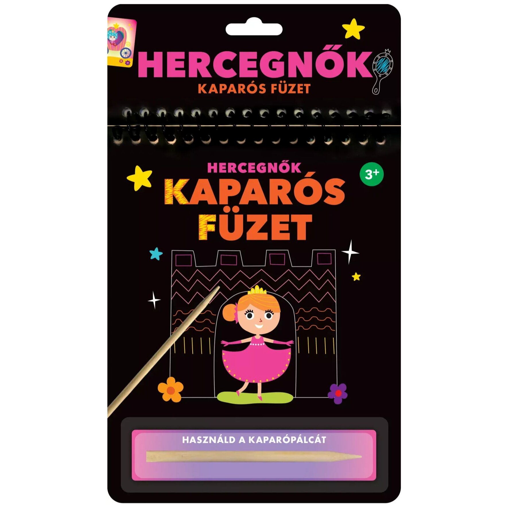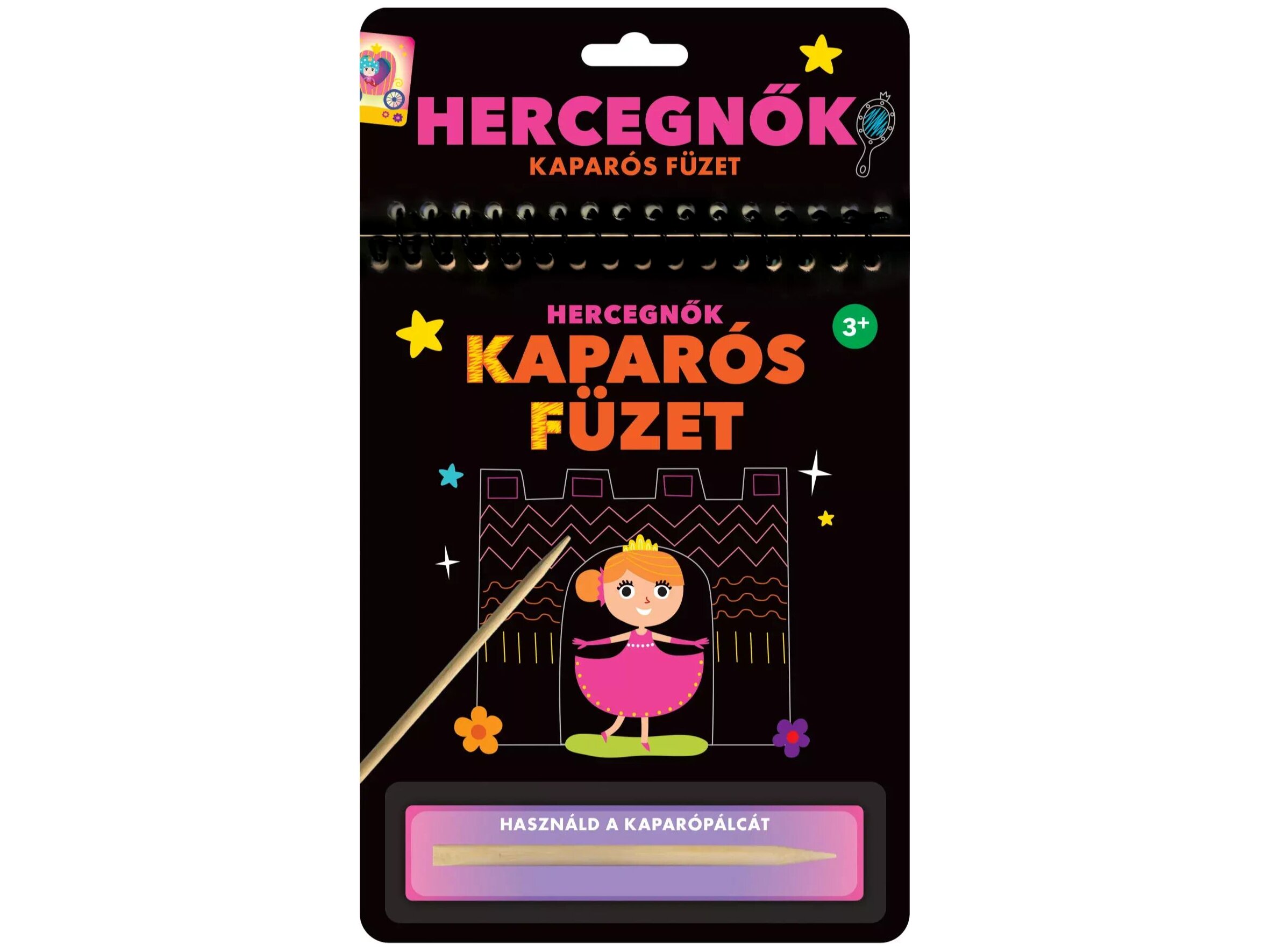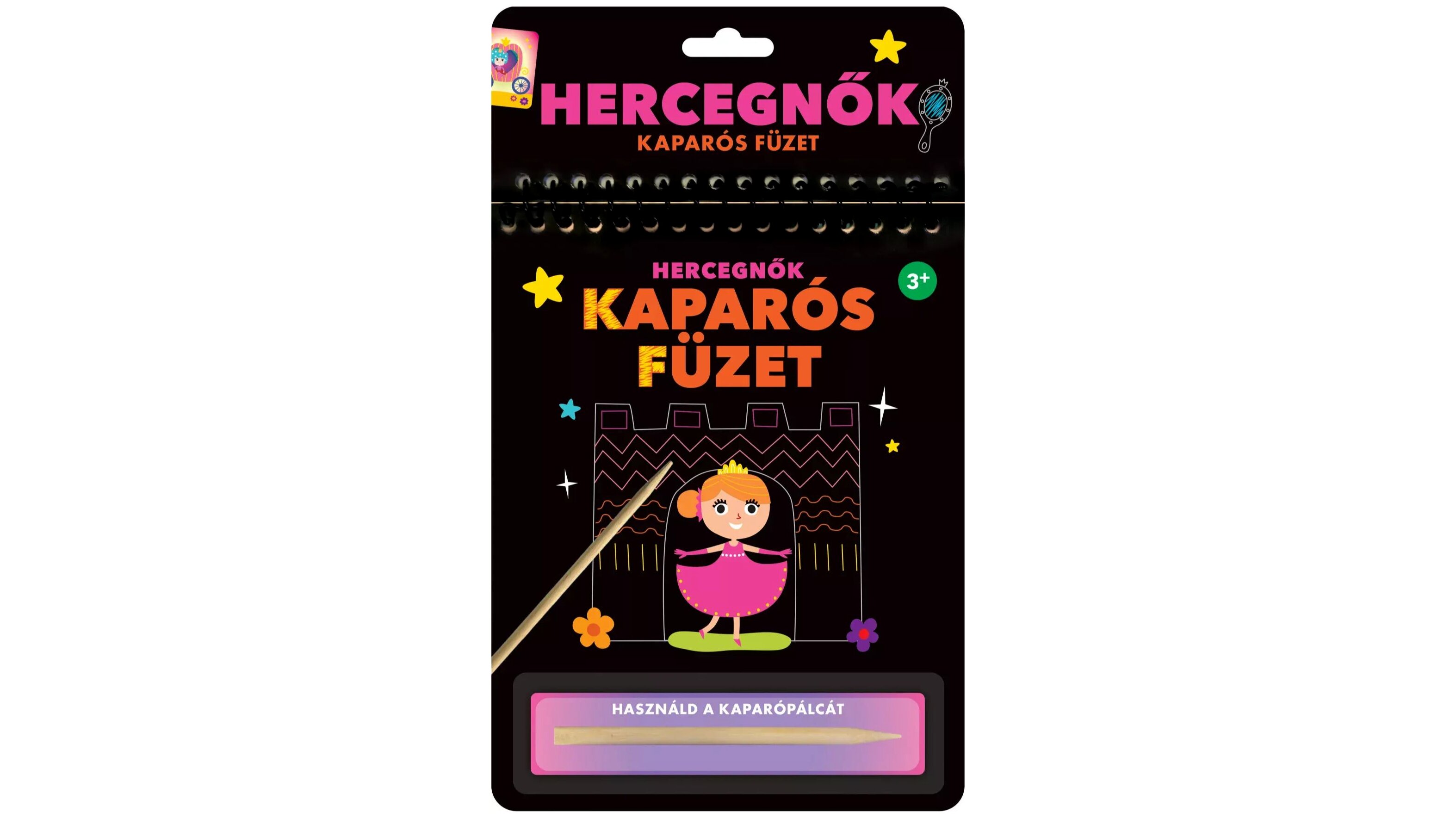A Kaparós füzet – Hercegnők varázslatos kalandokkal várja a gyerekeket, miközben fejleszti kreativitásukat és finommotoros készségeiket. A füzet különleges kaparós technikával működik: a fekete réteg eltávolításával mesés jelenetek, gyönyörű hercegnők, kastélyok, hintók és varázslatos tájak kelnek életre. A mellékelt kaparópálca segítségével a gyerekek egyedi mintákat és színeket hozhatnak elő, miközben órákon át tartó szórakozást találnak ebben a foglalkoztatóban.