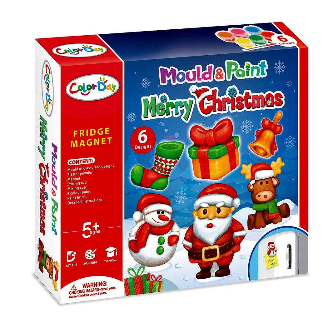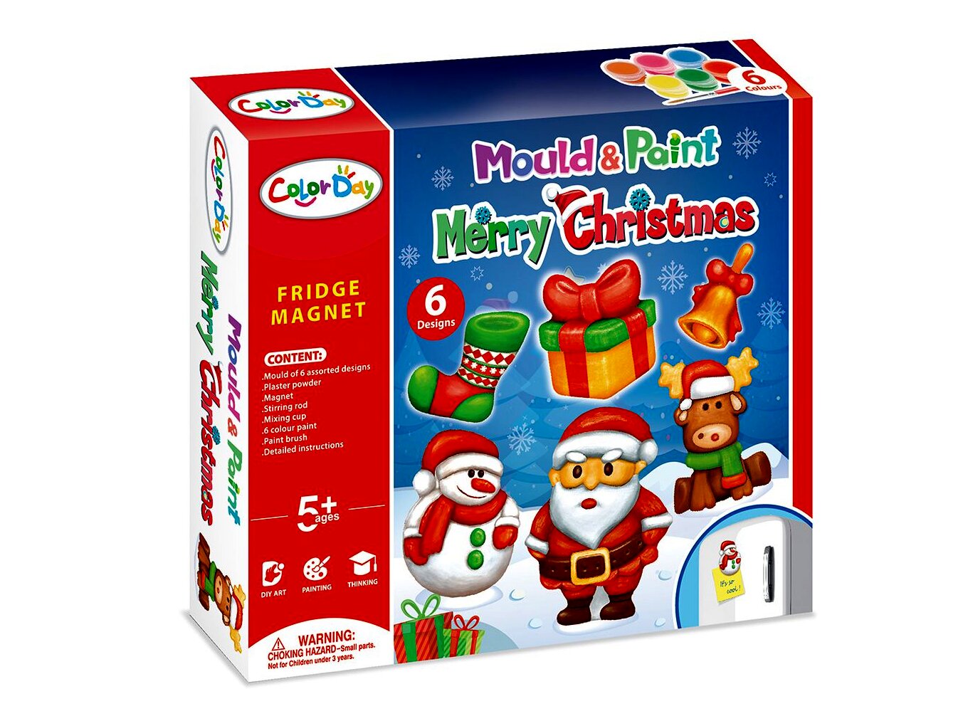 Tartalom: 6 különböző hűtőmágnes, Gipsz, Keverő pálca, Keverő edény, 6 színes festék, Ecset, Leírás