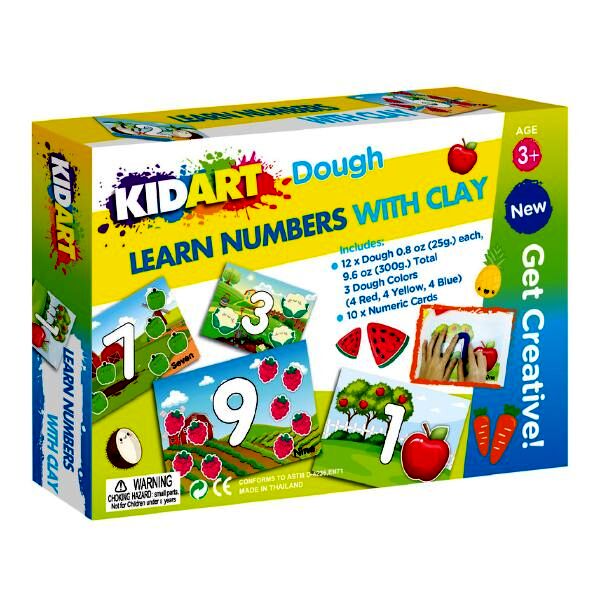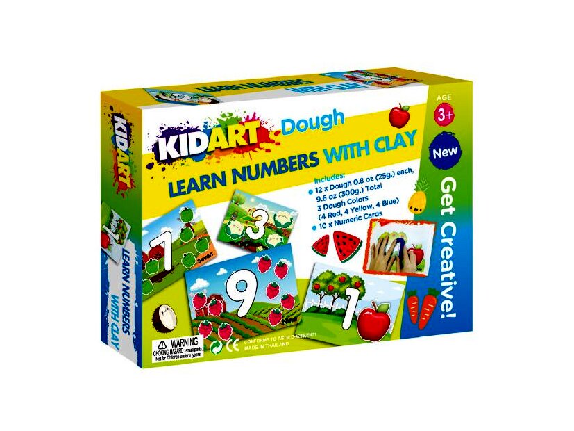 A gyerekek könnyedén és játékosan ismerkedhetnek meg a számok világával a hatalmas gyurmakészlet segítségével. A csomag 10 db szám kártyát, valamint 12 db 25 grammos gyurmát tartalmaz (3 színben) a formázáshoz. A kártyákon gyümölcsöket és zöldségeket számlálhatnak a gyerekek, megformázhatják a számokat gyurmából és rányomhatják a lapokra, ezzel segítve a tanulást és a berögzülést.