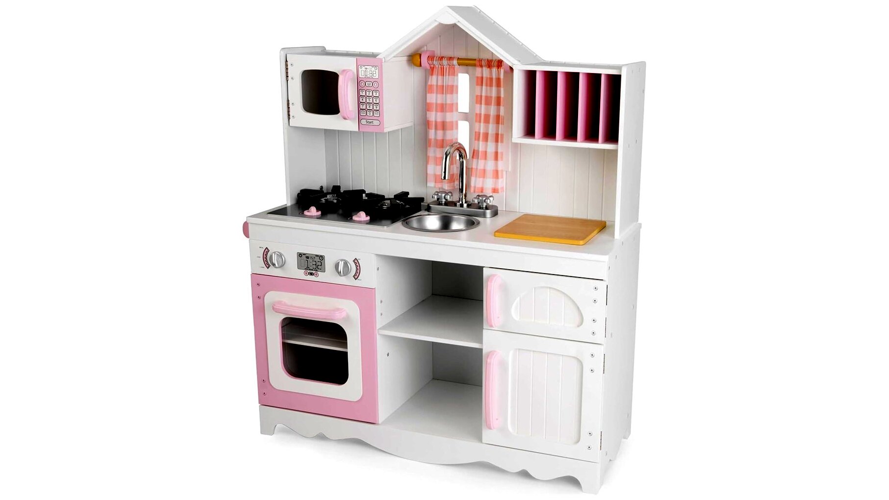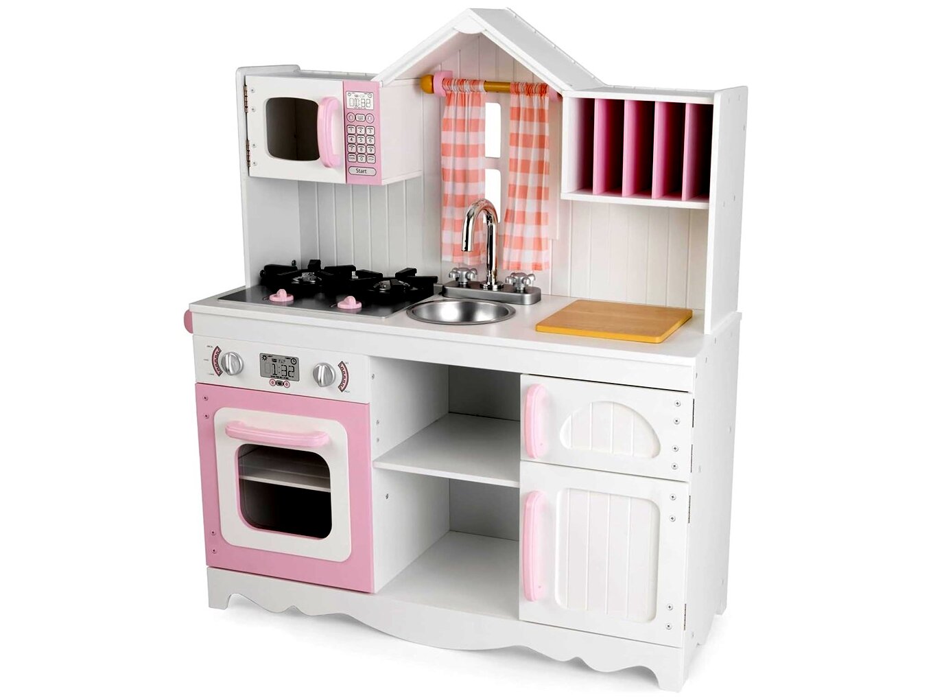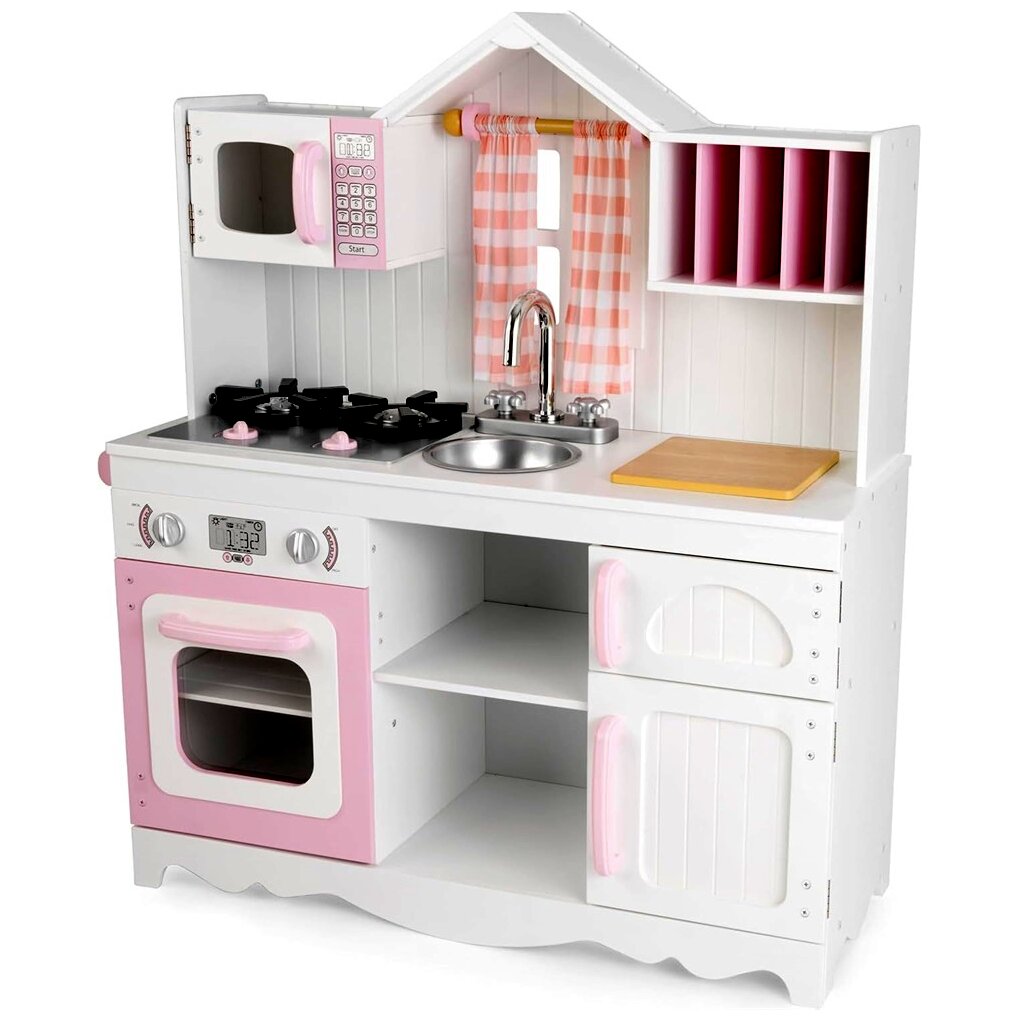 A KidKraft modern vidéki játékkonyha egy bájos, rózsaszín-fehér színvilágú, fából készült játékkonyha, amely a fiatal séfek számára készült. Ez a részletes kidolgozású konyha nemcsak szórakoztató, hanem fejleszti a gyermekek kreativitását és finommotoros készségeit is.