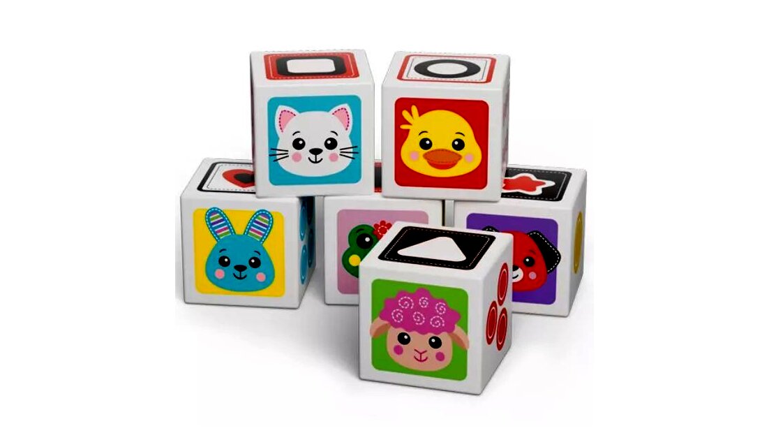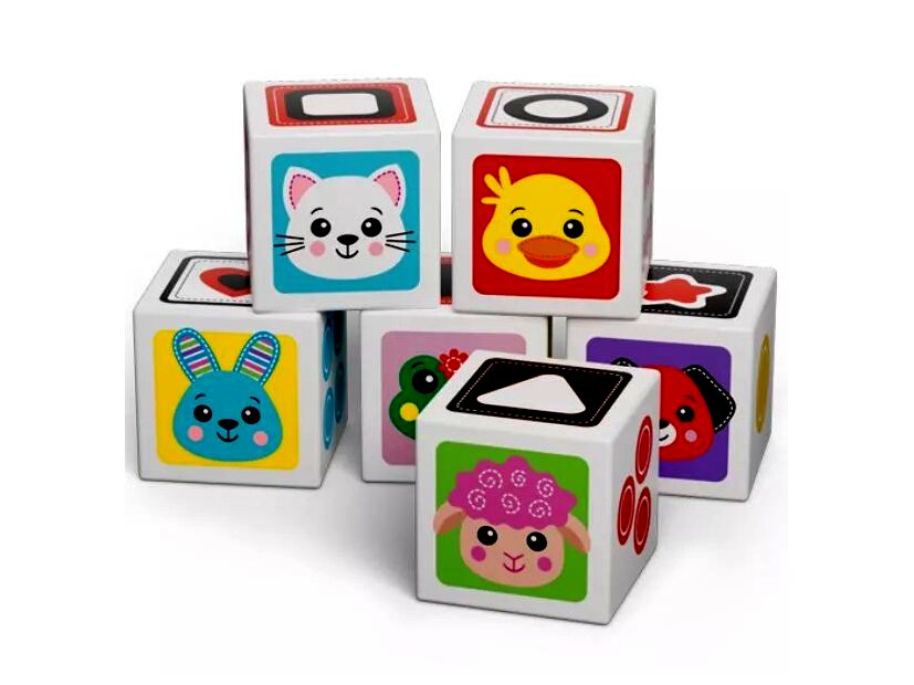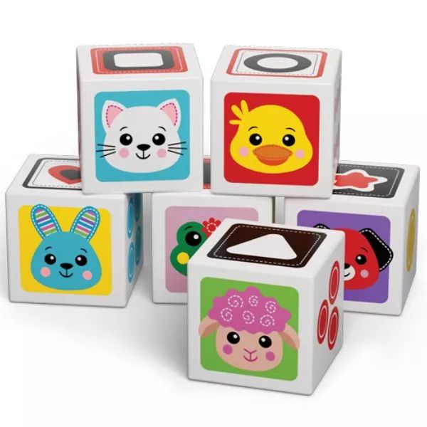 Ebben a szettben 6 darab különböző kocka található, amelyeken különböző állatok, számok, alakzatok és eledelek láthatók. Segítségével a picik rengeteg új dolgot megtanulhatnak a világról.