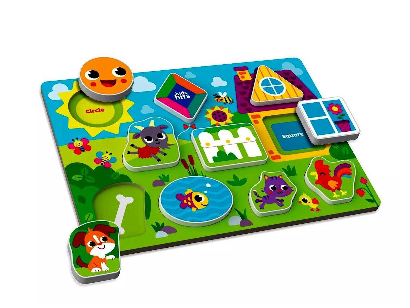 Fedezd fel a Kids Hits Fa formaillesztő puzzle - Farm csodálatos világát, amely tökéletes választás a gyerekek számára, hogy már kiskorukban megismerkedjenek a formákkal és színekkel.