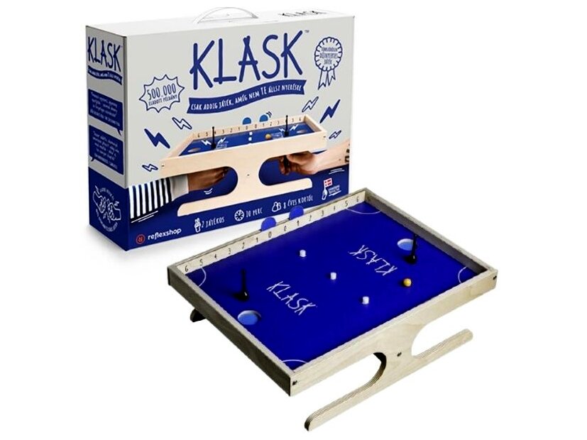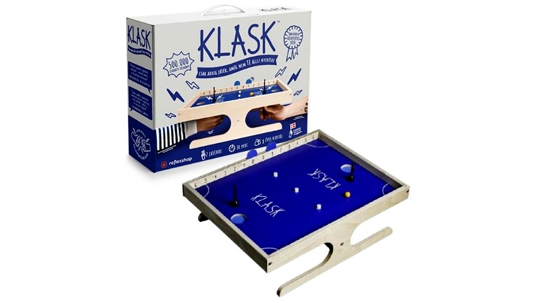 A KLASK mágneses játék egy izgalmas és egyedülálló, többszörösen díjnyertes ügyességi társasjáték. A játékot egy asztalka alatt kell játszani, mágneses bábukat mozgatva. A cél a góllövés. A pálya közepén elhelyezkedő mágnesrúdra azonban ügyelni kell, nehogy a bábura tapadjanak.2015-ben Svédországban az Év Játékává választották. Dániában is az egyik legsikeresebb, legkedveltebb ügyességi társasjáték.