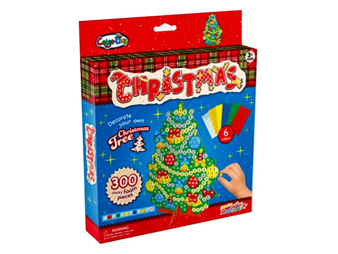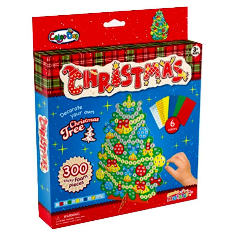 Tartalom: 1 db karton karácsonyfa, 6 db ragadós szivacslap összesen 300 db habszivacs mozaikkal.