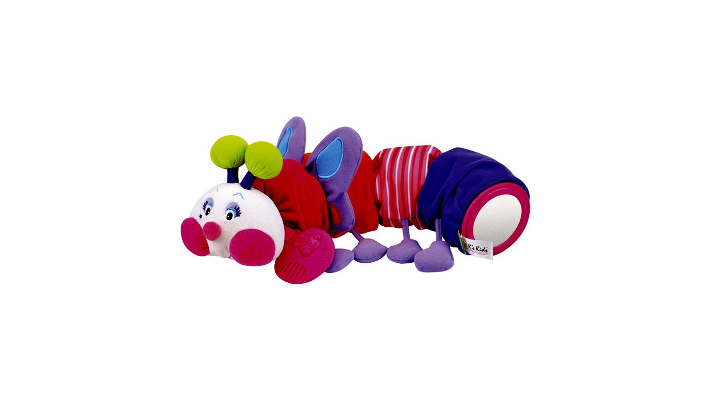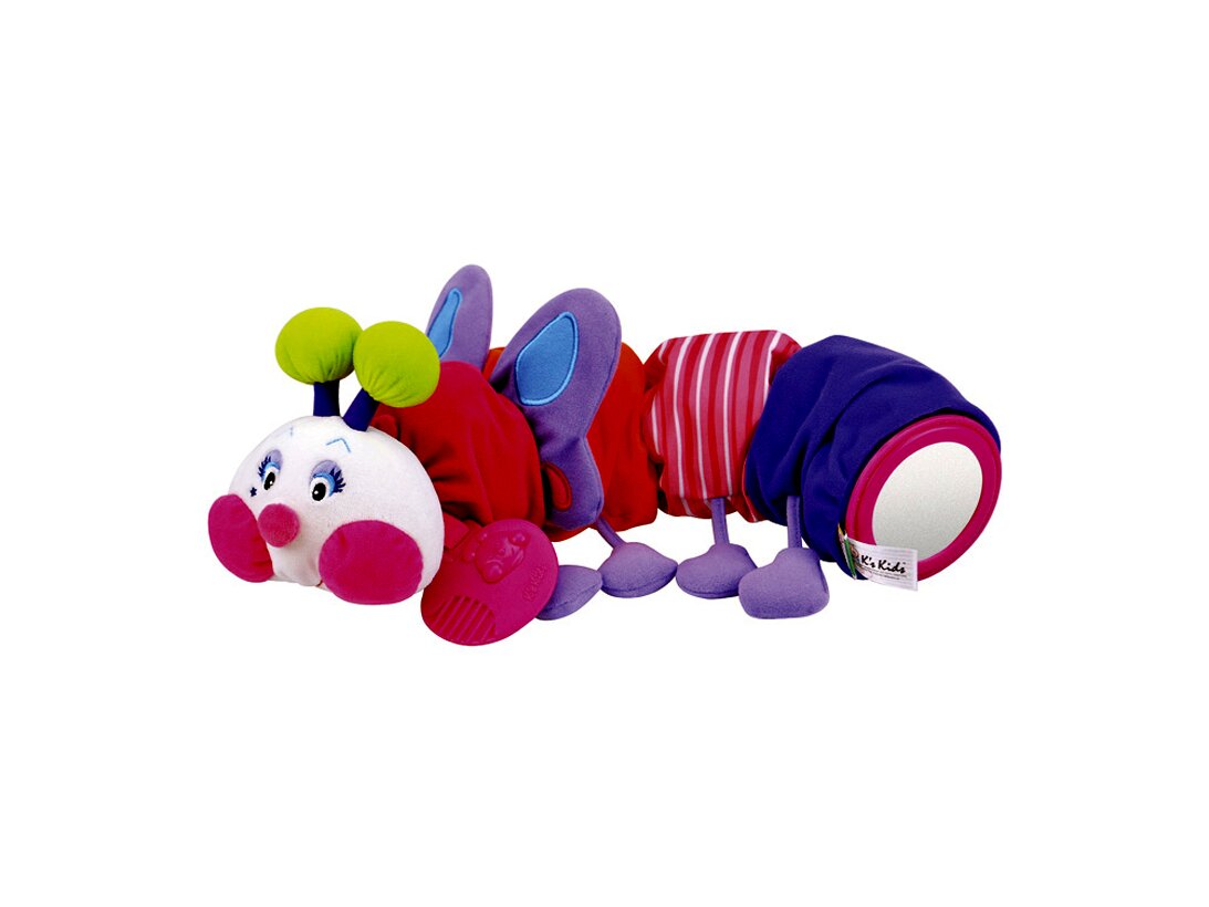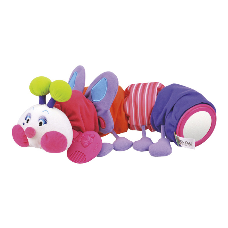 K's Kids Rózsaszín plüss Kukacka. Puha anyagból készült, vidám, színes, plüss Kukacka a lány babáknak. A kukackán tükör, valamint egy kis műanyag rágóka is található. A kis kukacot a picik kedvükre ölelgethetik, harapdálhatják. A játék remekül fejleszti a babák érzékelését, finommotorikus, nagymotoros képességét, logikai intelligenciáját, érzelmi készségét, valamint önértékelését.