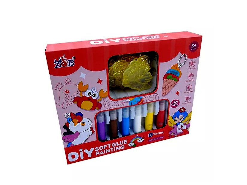 Tartalom: 6 db üvegfesték, 9 db fényvarázs forma, Láncok a felakasztáshoz, Csipesz, Színes dekorgyöngyök