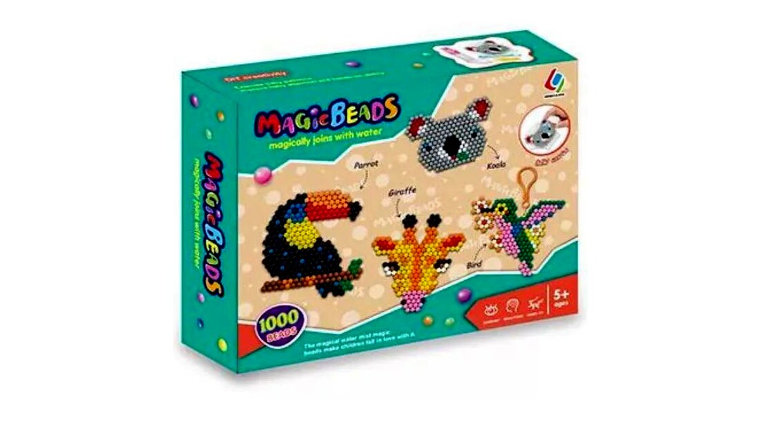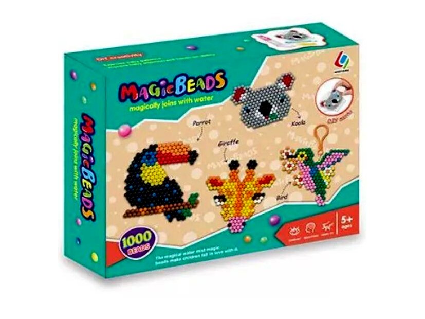 Ez a gyöngykép készítő szett tökéletes választás a kreatív gyerekek számára. A készlet segítségével egyedi, színes gyöngyállatkák készíthetők. A gyöngyök könnyen - az AquaBeads-hez hasonlóan - víz segítségével tapadnak egymáshoz, ezért nincs szükség vasalóra. A játék fejleszti a kreativitást és a finommotorikus készségeket.A termék jellemzői: