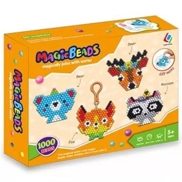 Ez a gyöngykép készítő szett tökéletes választás a kreatív gyerekek számára. A készlet segítségével egyedi, színes gyöngyállatkák készíthetők. A gyöngyök könnyen - az AquaBeads-hez hasonlóan - víz segítségével tapadnak egymáshoz, ezért nincs szükség vasalóra. A játék fejleszti a kreativitást és a finommotorikus készségeket.A termék jellemzői: