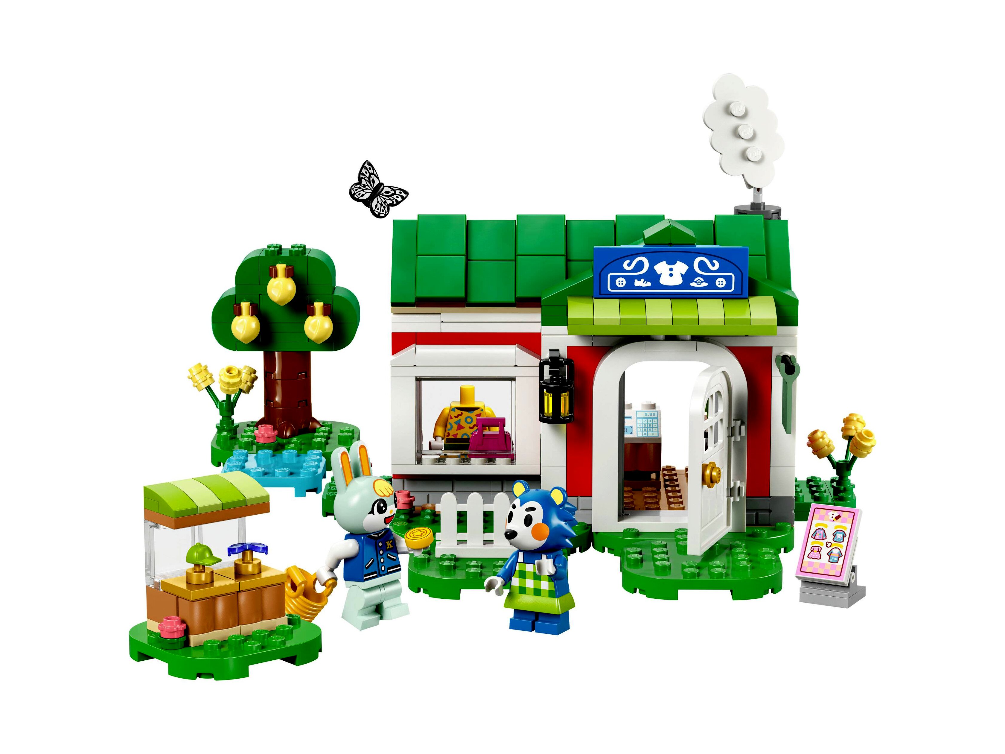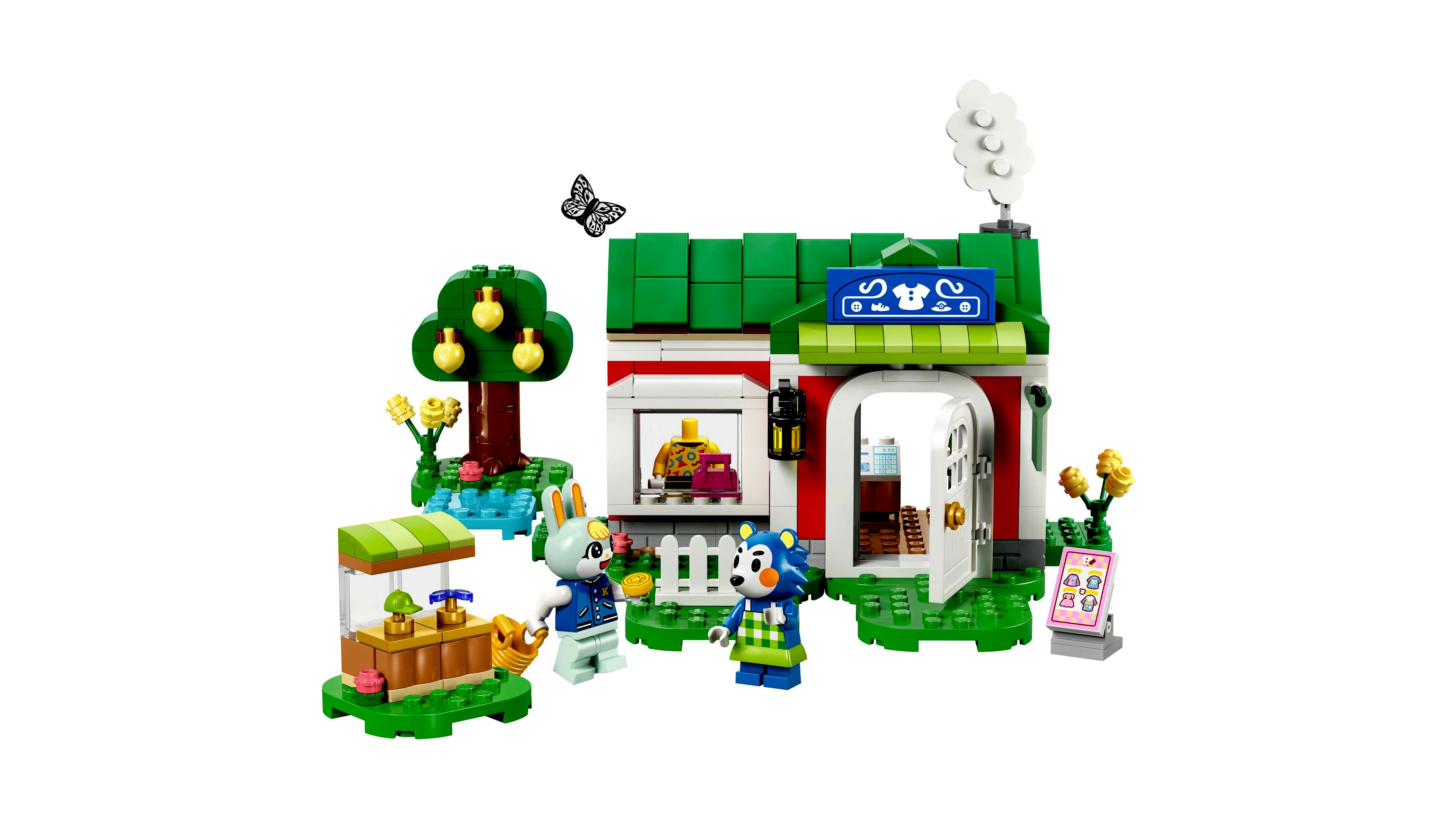 A gyerekek átrendezhetik az alaplapokat, hogy megváltozzon a ruhabolt körüli kert, és cserélgethetik az ajtót és tetőt a többi (külön kapható) LEGO Animal Crossing szett elemeivel. A gyerekeknek egyszerű és intuitív építési élményben lehet részük a LEGO Builder appal, ahol 3D-ben felnagyíthatják és elforgathatják kreatív játékaikat, és követhetik a haladásukat is.
