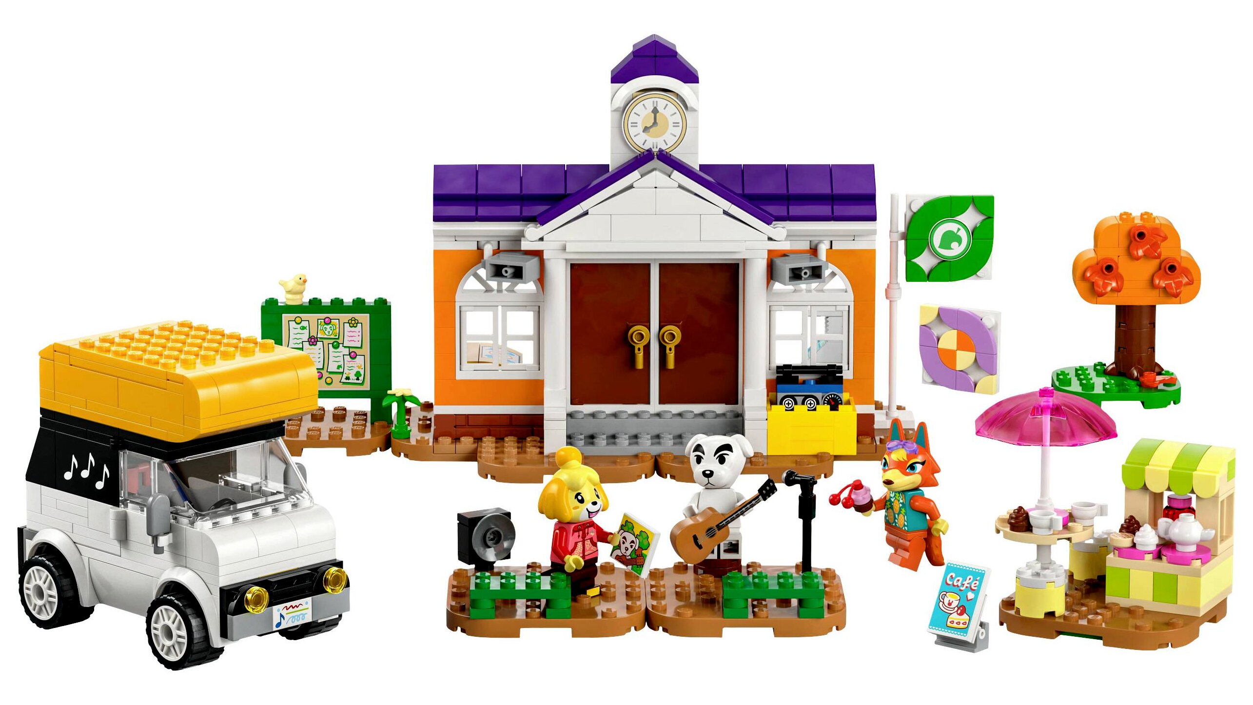 A gyerekek előkészíthetik K.K. koncertjét, ha leveszik neki a játék mikrofont a lakóautó tetejéről, eljátszhatják, hogy gitároznak, vagy csatlakozhatnak Isabelle-hez a csoportos nyújtásban. Meghallgathatják a legfrissebb híreket a kávézóban Audie-val, mielőtt a dolgára indul a városházába, ahol DIY receptkártyát szerezhetnek, jutalmakat válthatnak be az ATM-nél, és megnézhetik, hogy vannak-e új dolgok az újrahasznosító dobozban. Mint a videójátékban, a fa egy meglepetést tartogat, és testre lehet szabni a Lakossági Szolgáltatások zászlóját. A gyerekek az alaplap átrendezésével megváltoztathatják az egész LEGO Animal Crossing szettet.