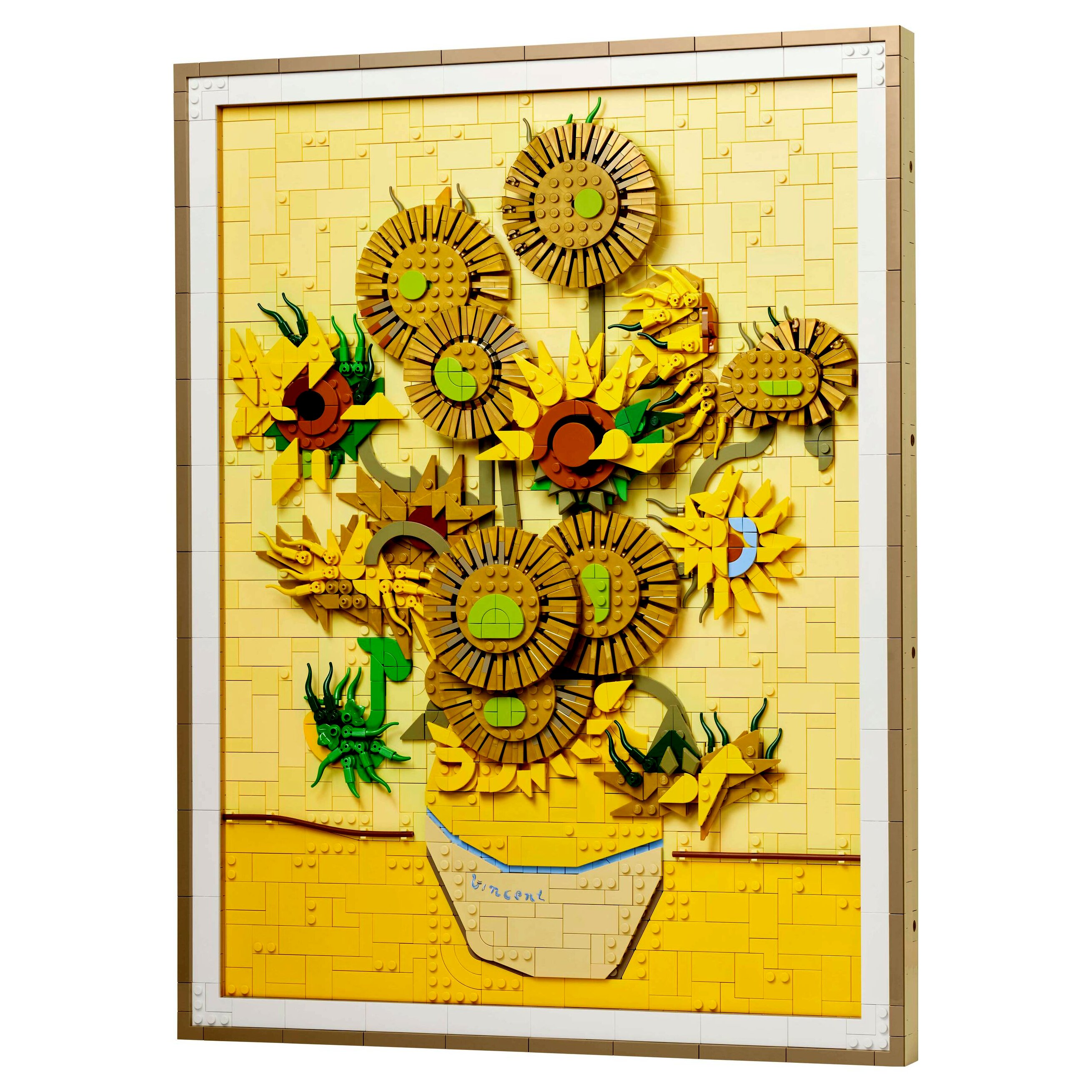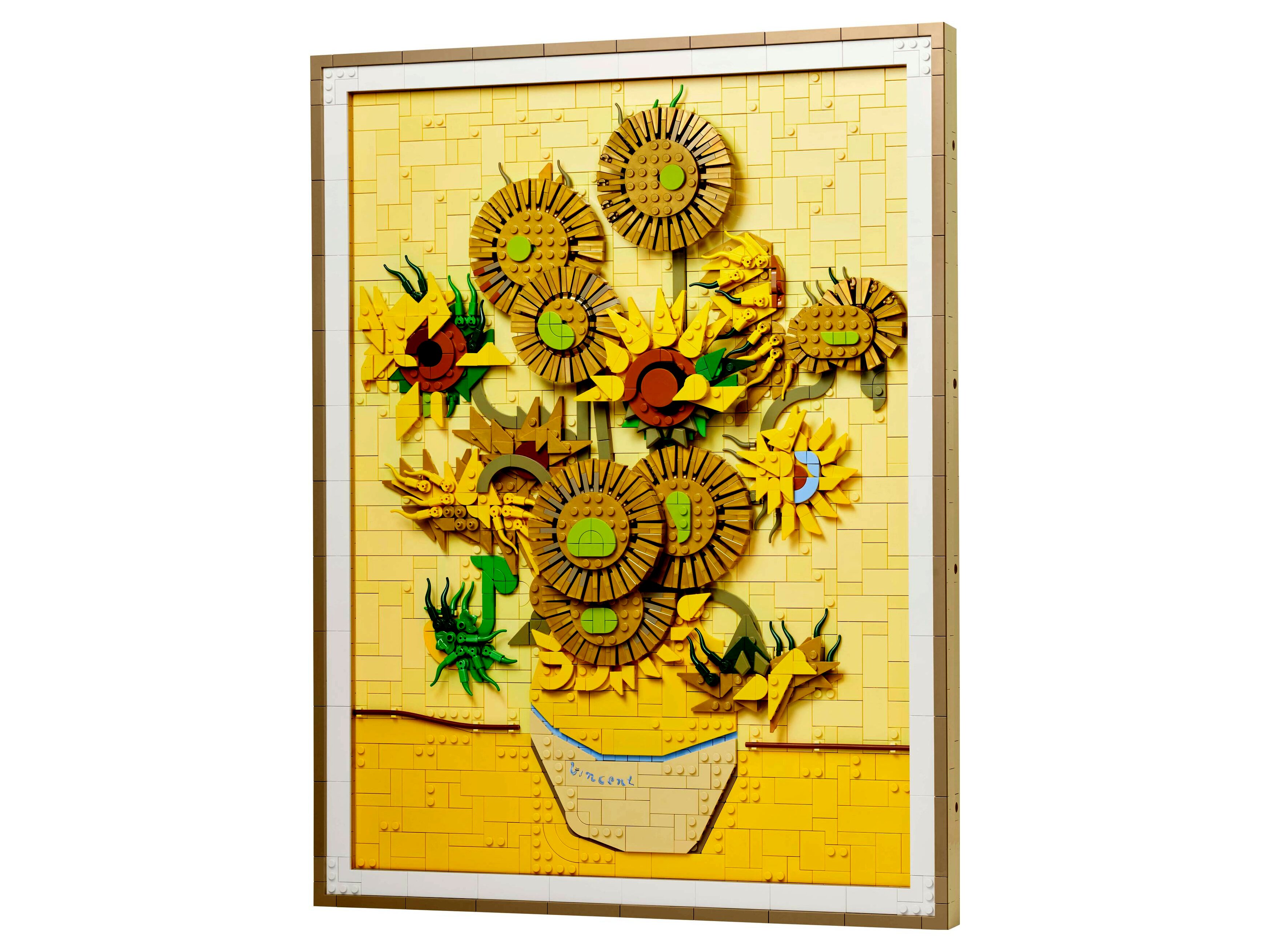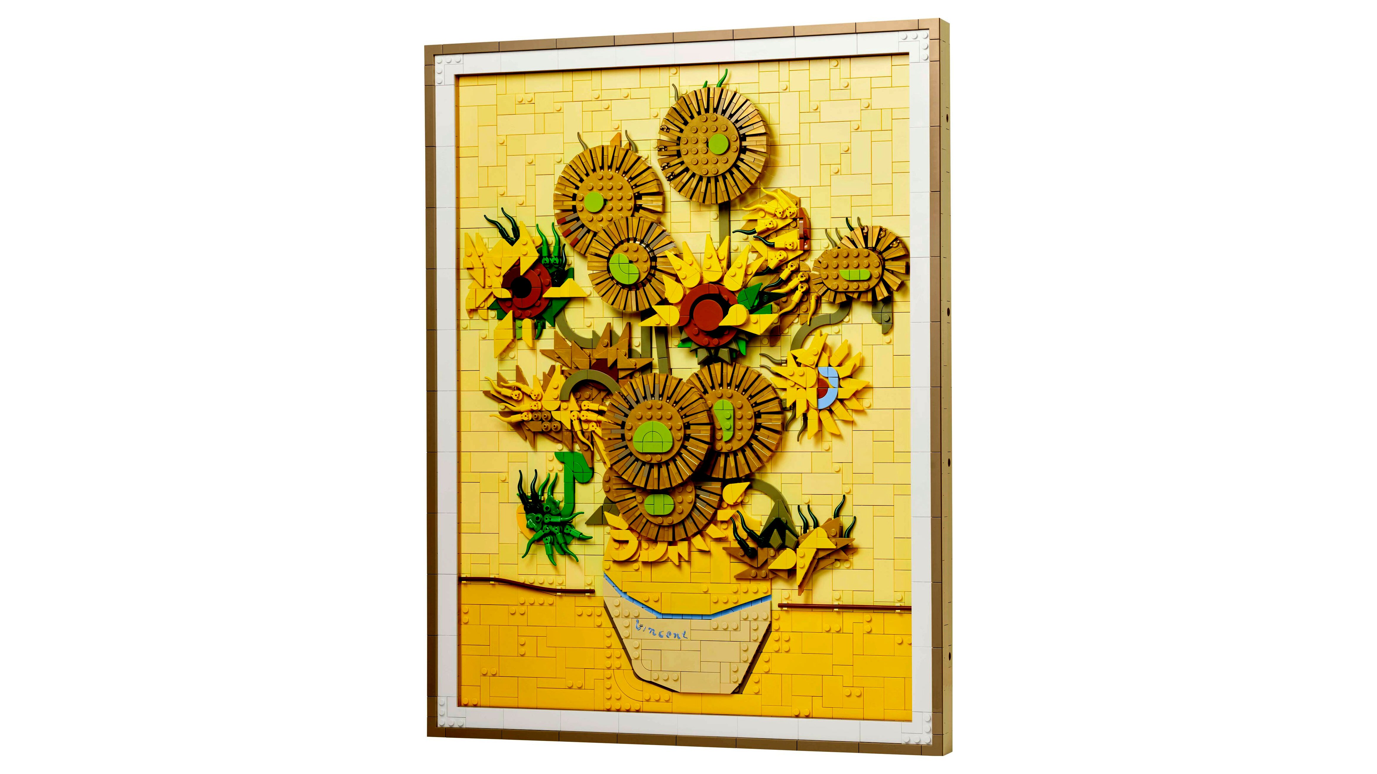 - 3D-s, kockákból épült Vincent Van Gogh LEGO® fali dekoráció – Varázsold otthonodba a világ egyik leghíresebb festményének szépségét a felnőtteknek készült LEGO Art Vincent van Gogh – Napraforgók építőszettel!