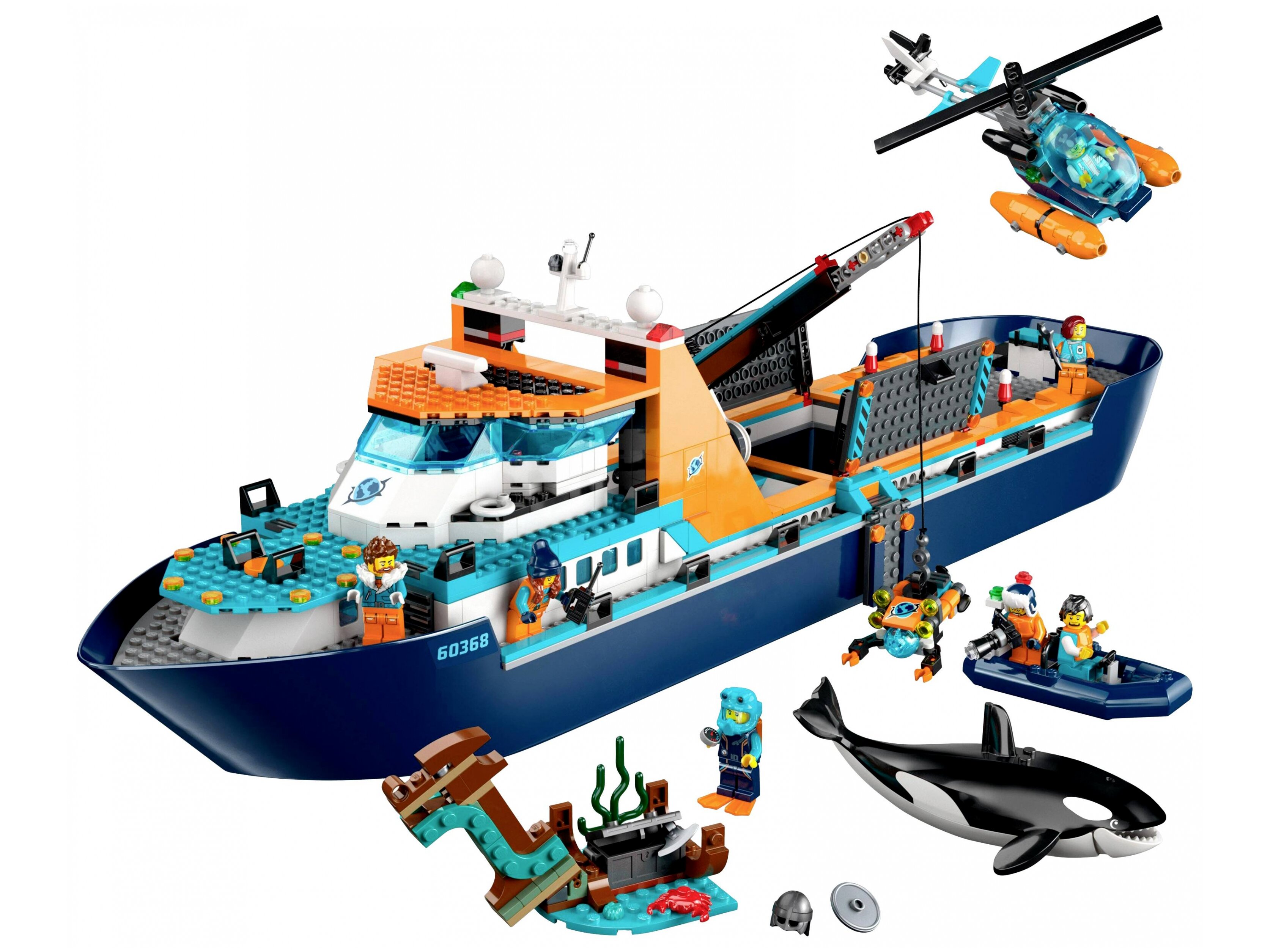 - Mit rejt a doboz? – Mindent, amire a gyerekeknek csak szükségük lehet egy kutatóhajó, helikopter, csónak, távolról irányítható tengeralattjáró és egy vikinghajóroncs megépítéséhez, valamint 7 minifigurát és egy kardszárnyú delfint is