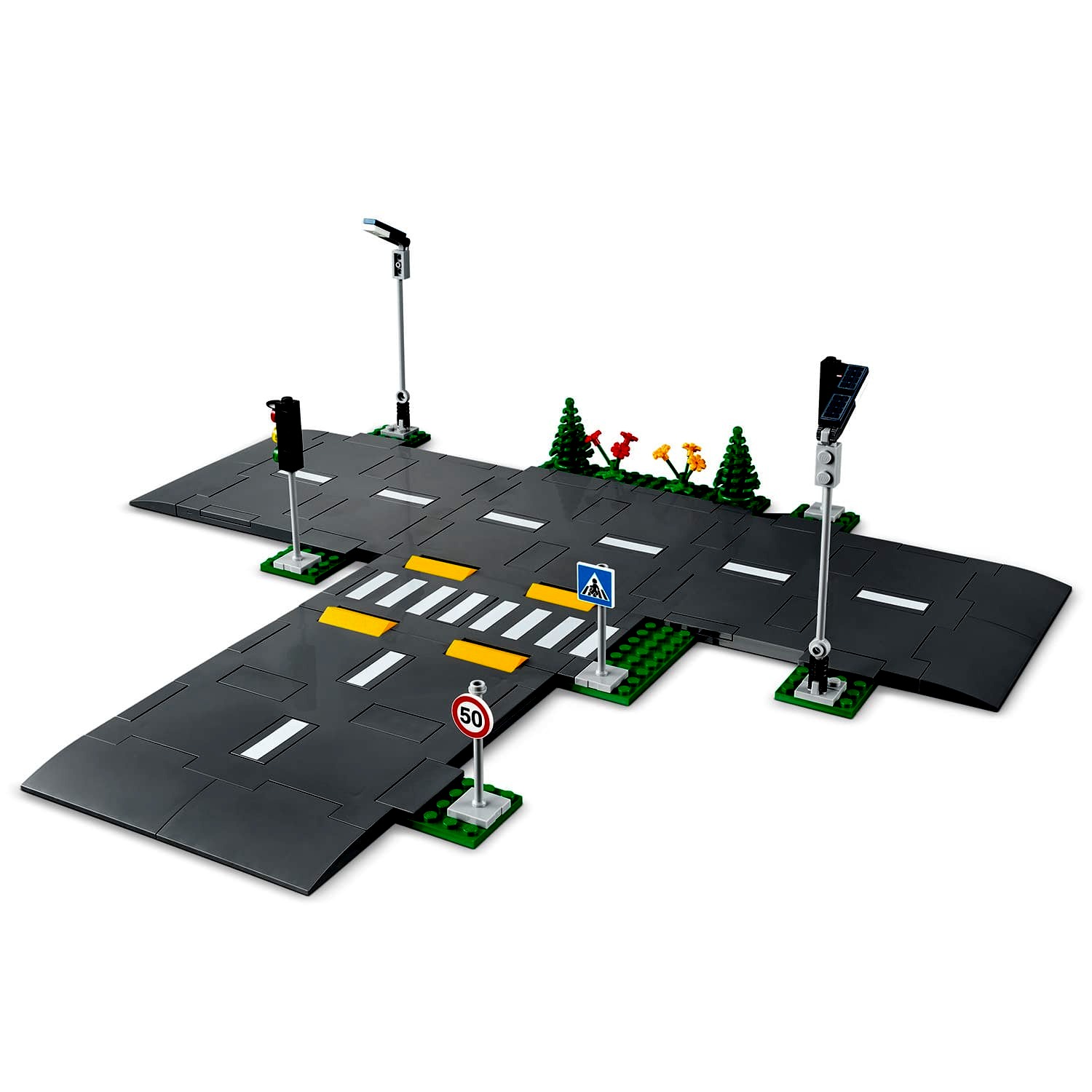 Ezzel a LEGO® City Útelemek (60304) szettel valósághű hangulatot csempészhetsz a gyermekek fantáziadús játékába, hiszen tartalmaz sötétben világító utcai lámpákat, jelzőlámpákat, közúti jelzőtáblákat, forgalmi sávjelzéseket, fekvőrendőröket, egy járdát, fákat és növényzetet is.