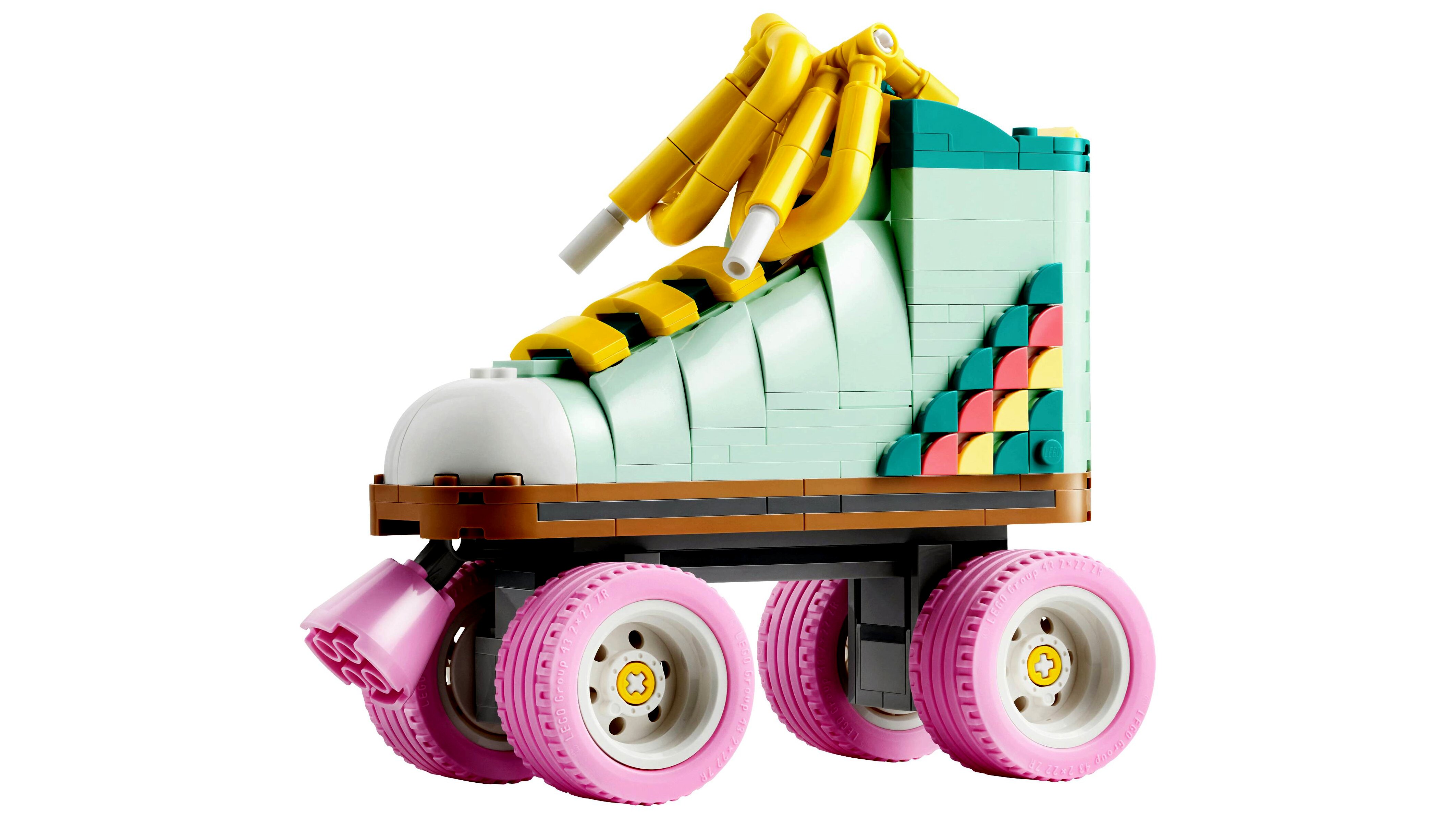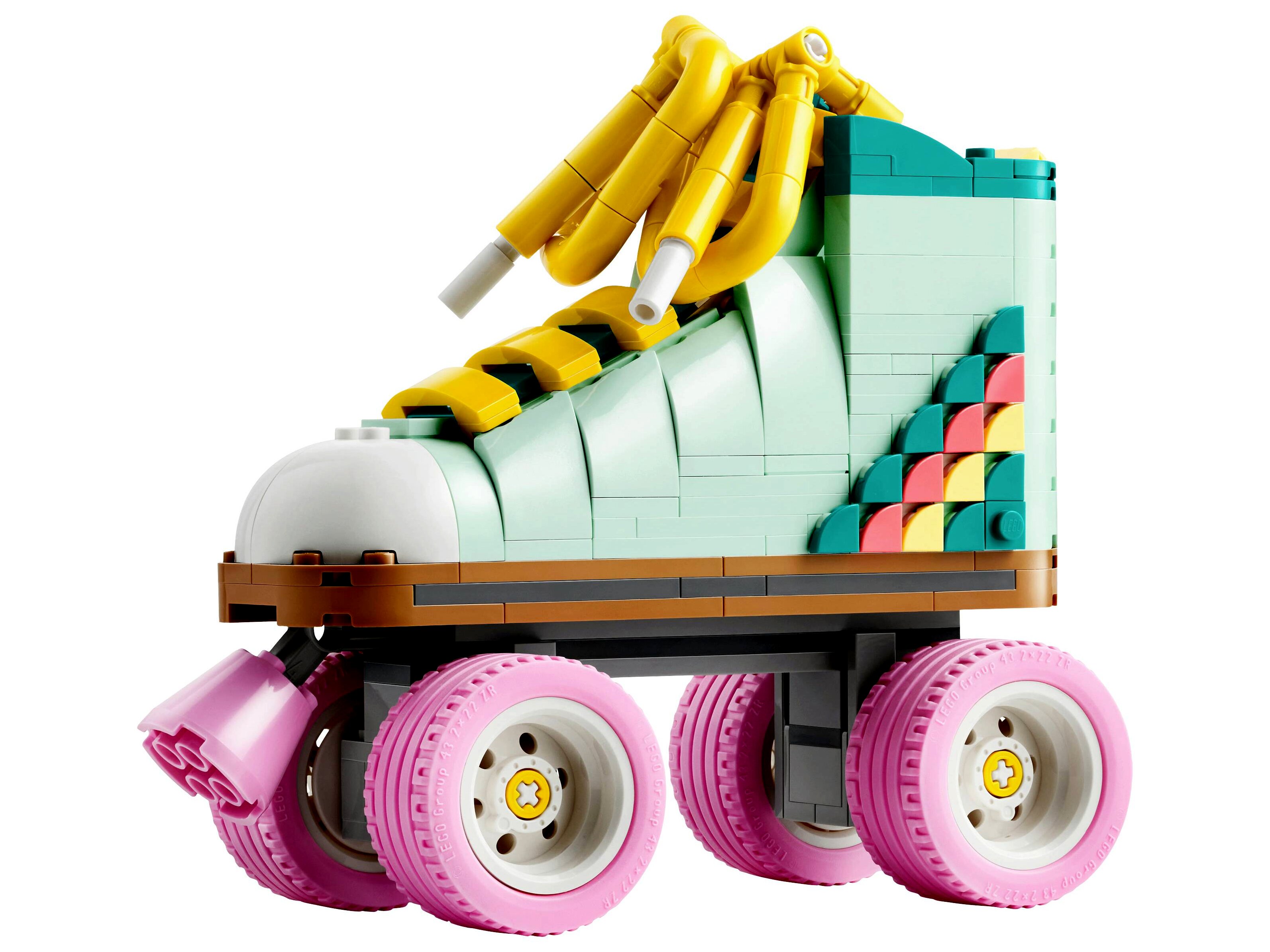 A 8 éves vagy annál nagyobb kreatív gyerekek visszautazhatnak az időben a színes LEGO® Creator Retró görkorcsolya (31148) építőszettel. Tartalmaz egy LEGO játék görkorcsolyát 4 mozgó, rózsaszín kerékkel, rózsaszín fékkel és vastag, sárga fűzőkkel, valamint számos színes elemmel, amelyekkel a gyerekek a saját elképzelésük szerint díszíthetik a csizma sarkát.