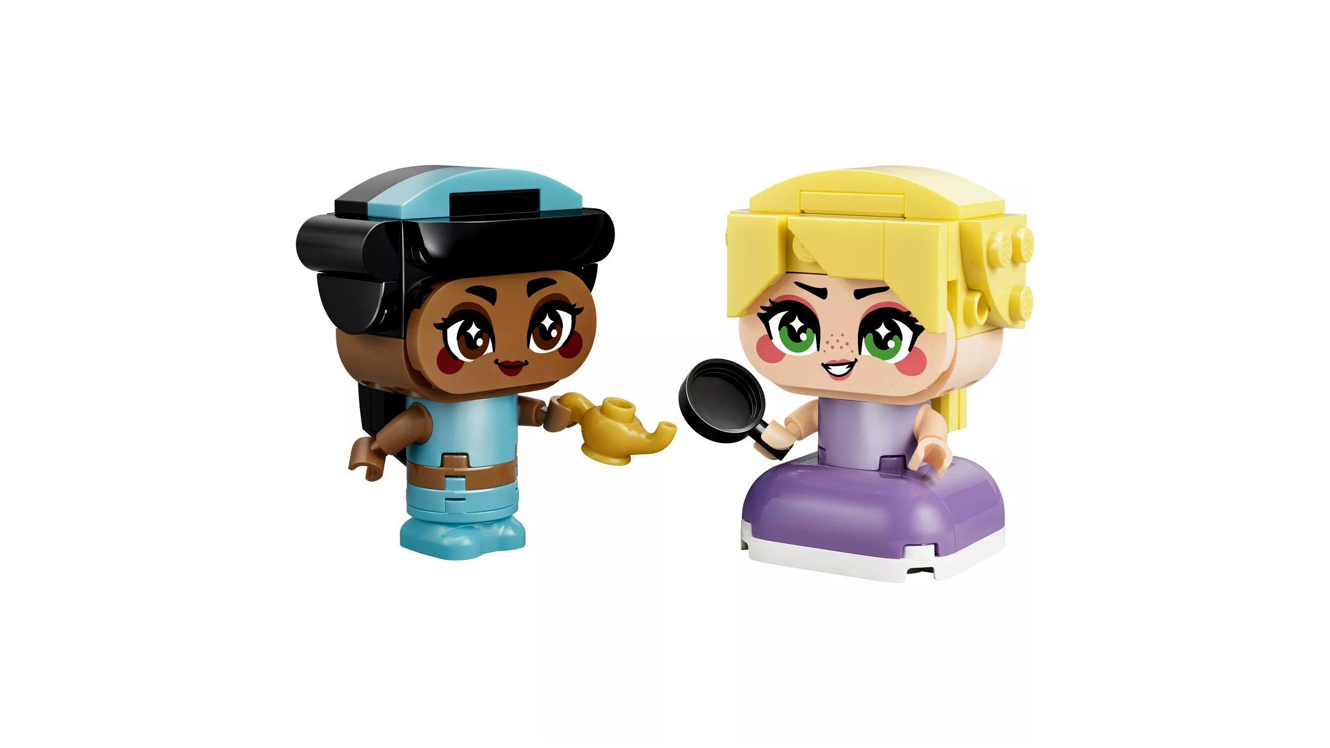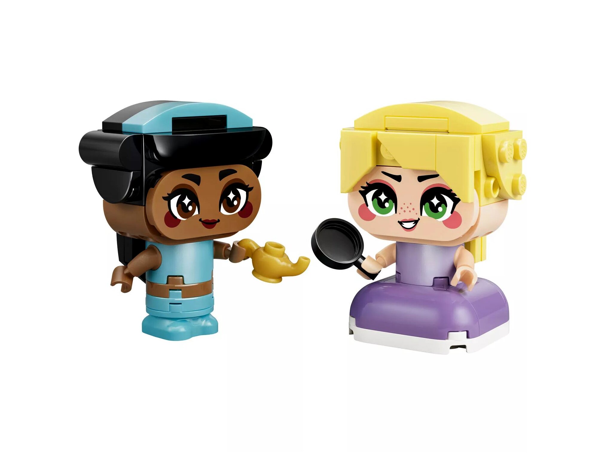 A LEGO® Disney Princess Mini Jázmin és Aranyhaj építőkészletben két, kockákból építhető Disney hercegnő figura vár, akik kiegészítőkkel és mozgatható karokkal ösztönzik a mesemondást, a szerepjátékot, és kiállítva is mutatósak.