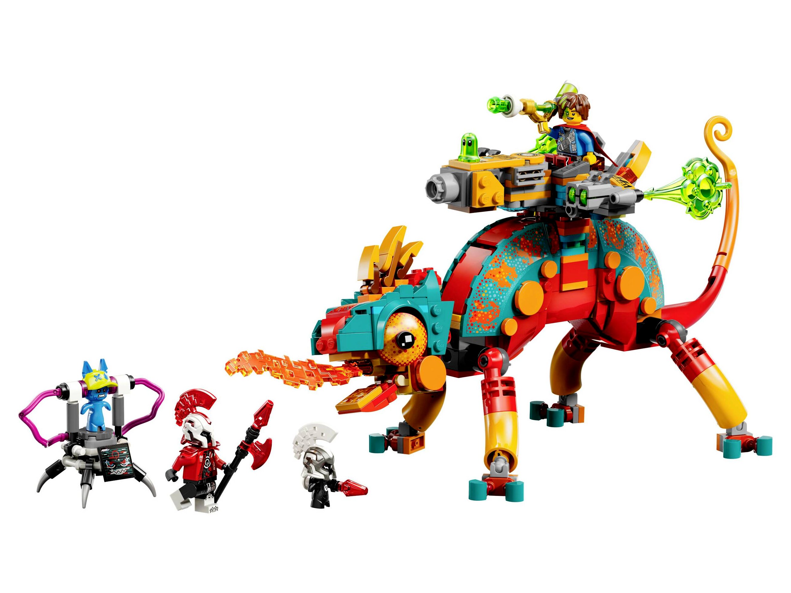 Az ifjú álmodók remekül szórakoznak majda kaméleonfigura építése közben, mielőtt felfedezik a 2 átalakítási lehetőséget: átépítheti egy tűzkaméleon-őrzővé, amely lövegtoronnyal és 4 korongvetővel van felszerelve, vagy átépíthetik egy villámgyors repülővé és minirobot-figurává. A játék kaméle onnak beállítható a szája, a feje, a farka, a szeme, a lába, de mindkét átépítési lehetőség rengeteg vagány részlettel vár, például egy moduláris gyorsítórakétával, amely kombinálható a LEGO® DreamZzz™ 2025-ös választék többi (külön kapható) építőszettjével. A történetet és a fantáziadús játékot Mateo és Zero minifigurák, valamint Logan, Z-Blob és Cyberling figurák keltik életre.