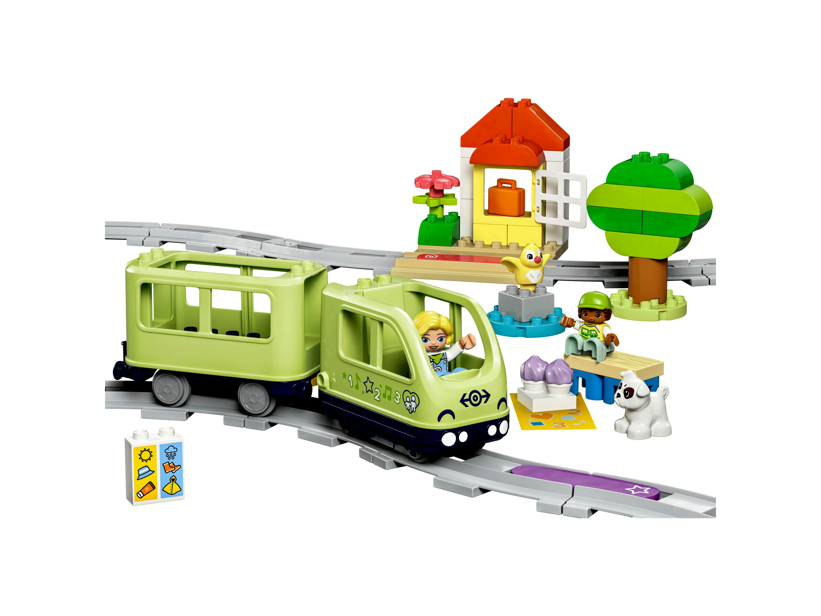 - Interaktív vonatos készlet az órákon át tartó, kreatív játékért – A 2+ éves kisgyermekek egy tanulásra ösztönző utazásban vehetnek részt a LEGO® DUPLO® Interaktív kalandvonat, óvodásoknak készült játékkal