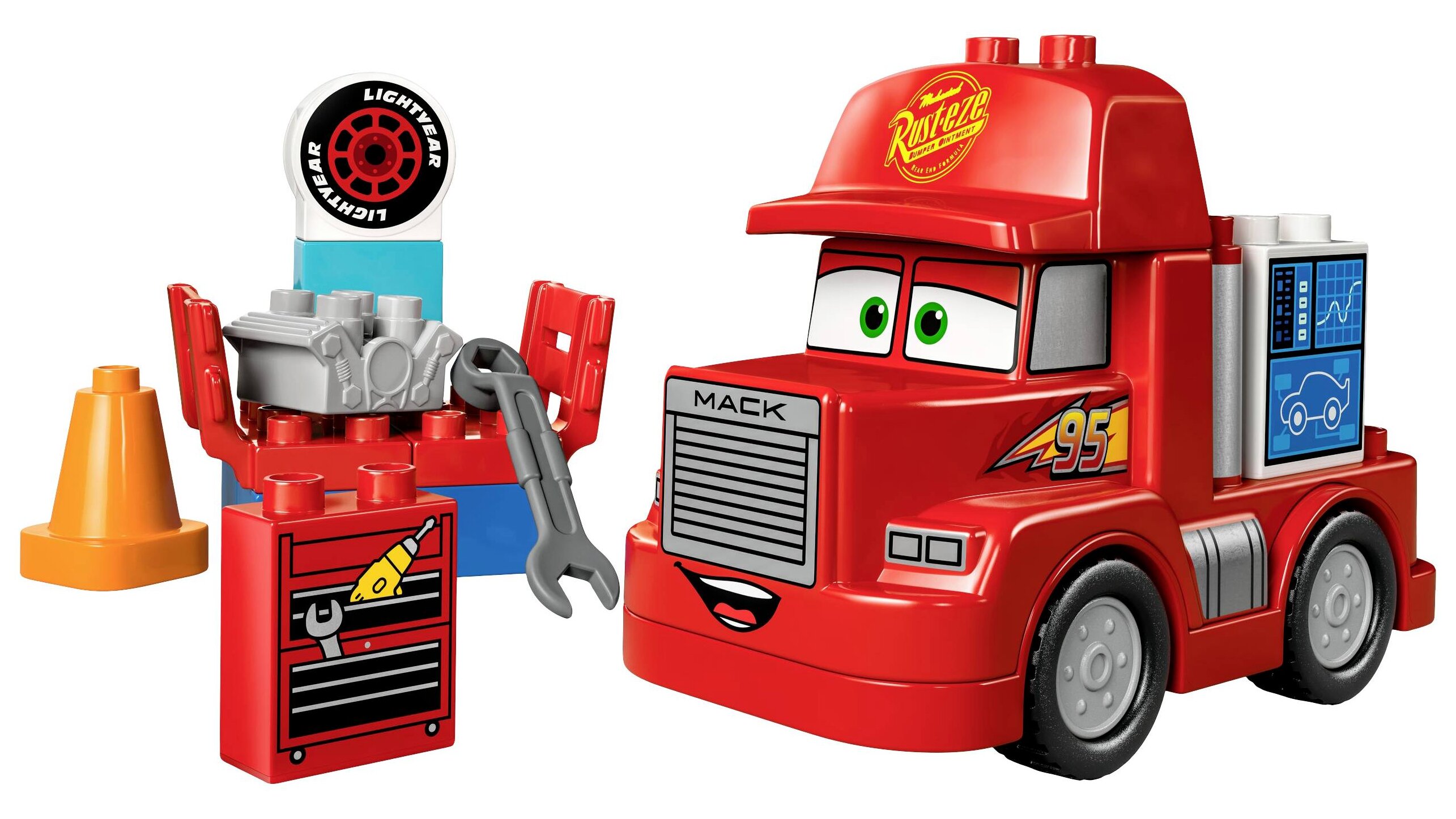 - LEGO® DUPLO®teherautó kreatív kiegészítőkkel – Tartalmazza a Disney és Pixar Verdák című film jól ismert figurájának, Macknek a vezethető és megépíthető modelljét, egy kocákból épült tuningállomást, egy motorkockát és egy bóját