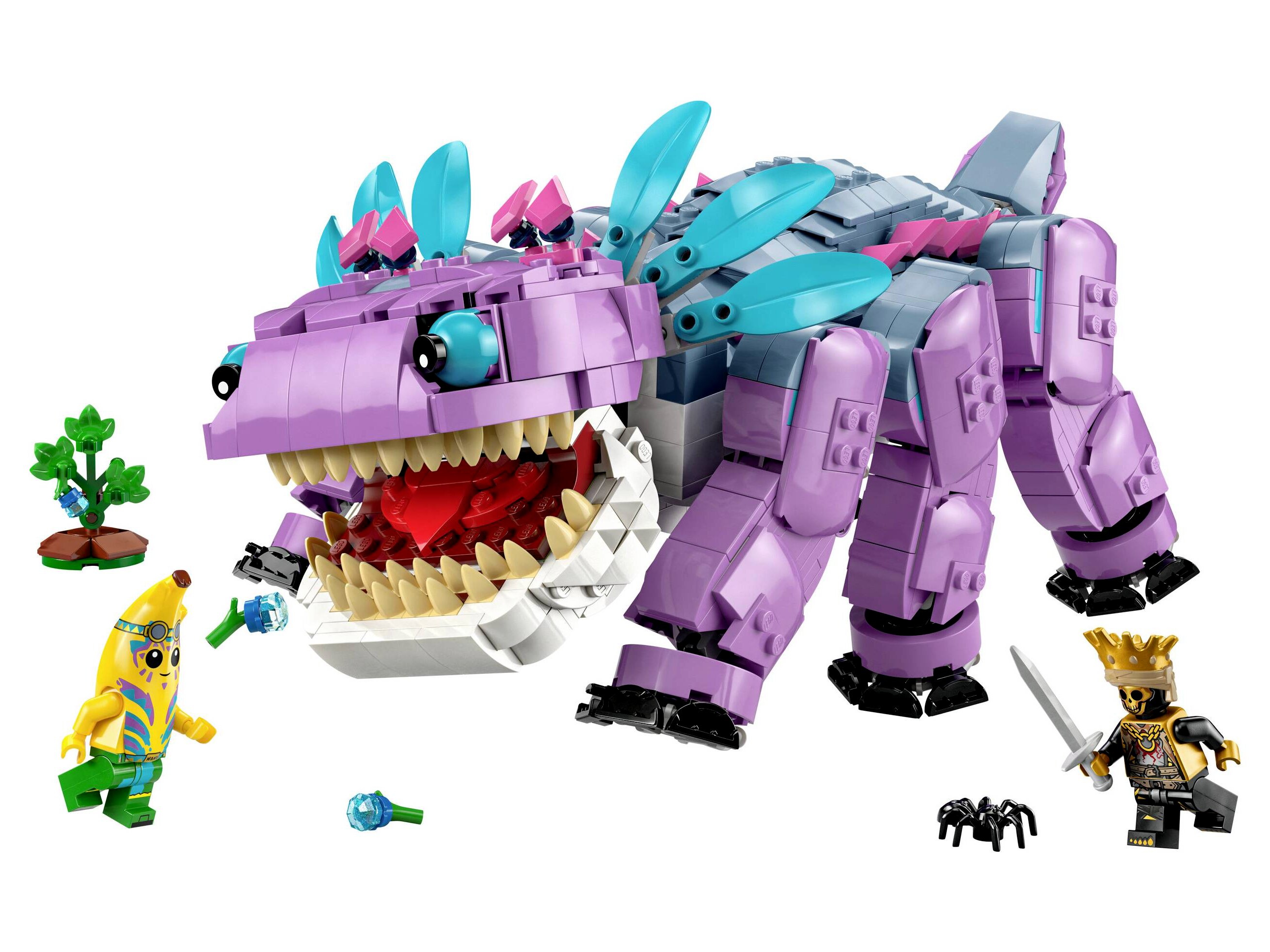 Klombo a LEGO Fortnite videójáték hatalmas lénye, és ezzel az építőkészlettel a gyerekek megépíthetik őt LEGO építőelemekből. Remekül szórakoznak majd a Fortnite ihlette játék megépítése során, majd felfedezhetik az összes vagány részletét, például a mozgatható lábát, a nyitható száját és a forgatható farkát. A szett része egy kicsi Klomberry-bokor is, amelyen levehető Klomberry gyümölcsök vannak, így a gyerekek eljátszhatják, hogy felidegesítik Klombót, majd megetetik a gyümölccsel, hogy barátokká váljanak. A szettben megtalálod Island Adventure Peely és Oro minifiguráit is, akiket Klombo hátára rögzíthetsz. Indulhat is a fantáziadús játék!