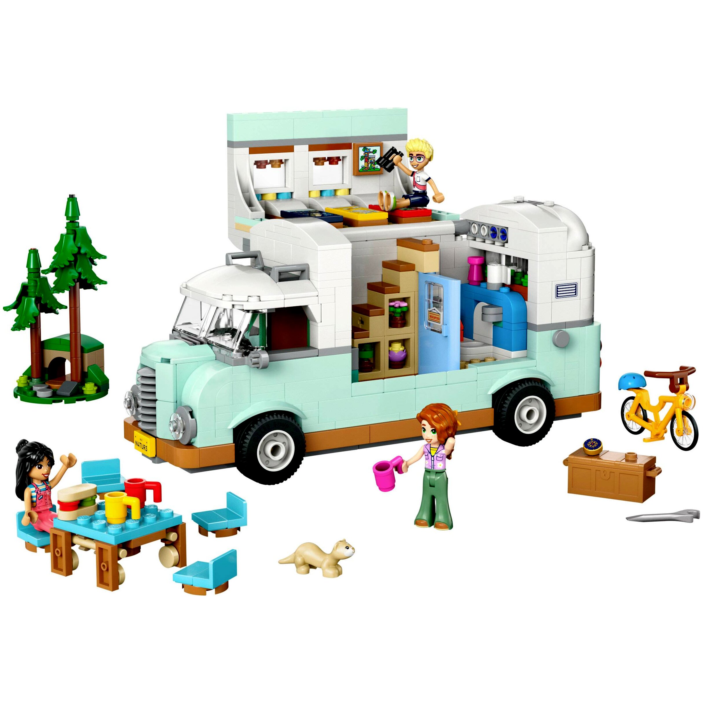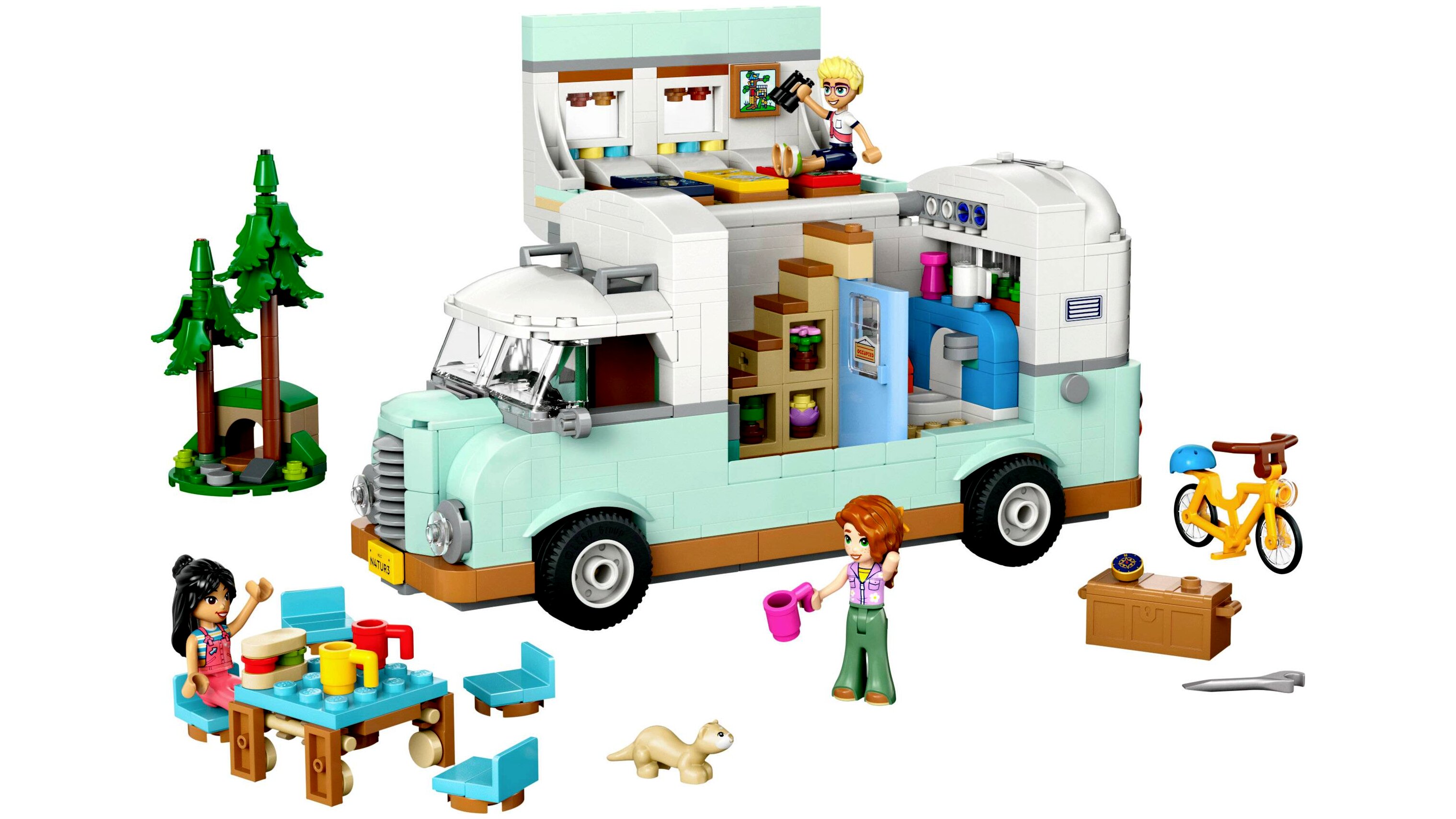 Ebben a gyermekeknek készült, lakóautót tartalmazó játékkészletben mindent megtalálsz, amire az ifjú felfedezőknek szükségük lehet, hogy elmeséljék saját, kempingezős történeteiket. A barátok a lakóautó vezetőfülkéjében ülnek, amikor megtalálják a tökéletes helyet az erdőben. Az autó kinyílik, hogy felfedezd a konyhát, a főzéshez szükséges eszközöket és a mosdót. Biztos kuncognak majd a gyerekek, ha megnézik, hogyan lehet „lehúzni” a vécét! Lépcső vezet az alvóhelyre, ahol 3 ágy van a figurák számára. A készlet olyan további részleteket is tartalmaz, mint a kerékpár, amelyet használhatnak a figurák, a kempingasztal és a székek, a kinti zuhanyzó és a kempingkiegészítők, például az iránytű, a villáskulcs és a távcső.