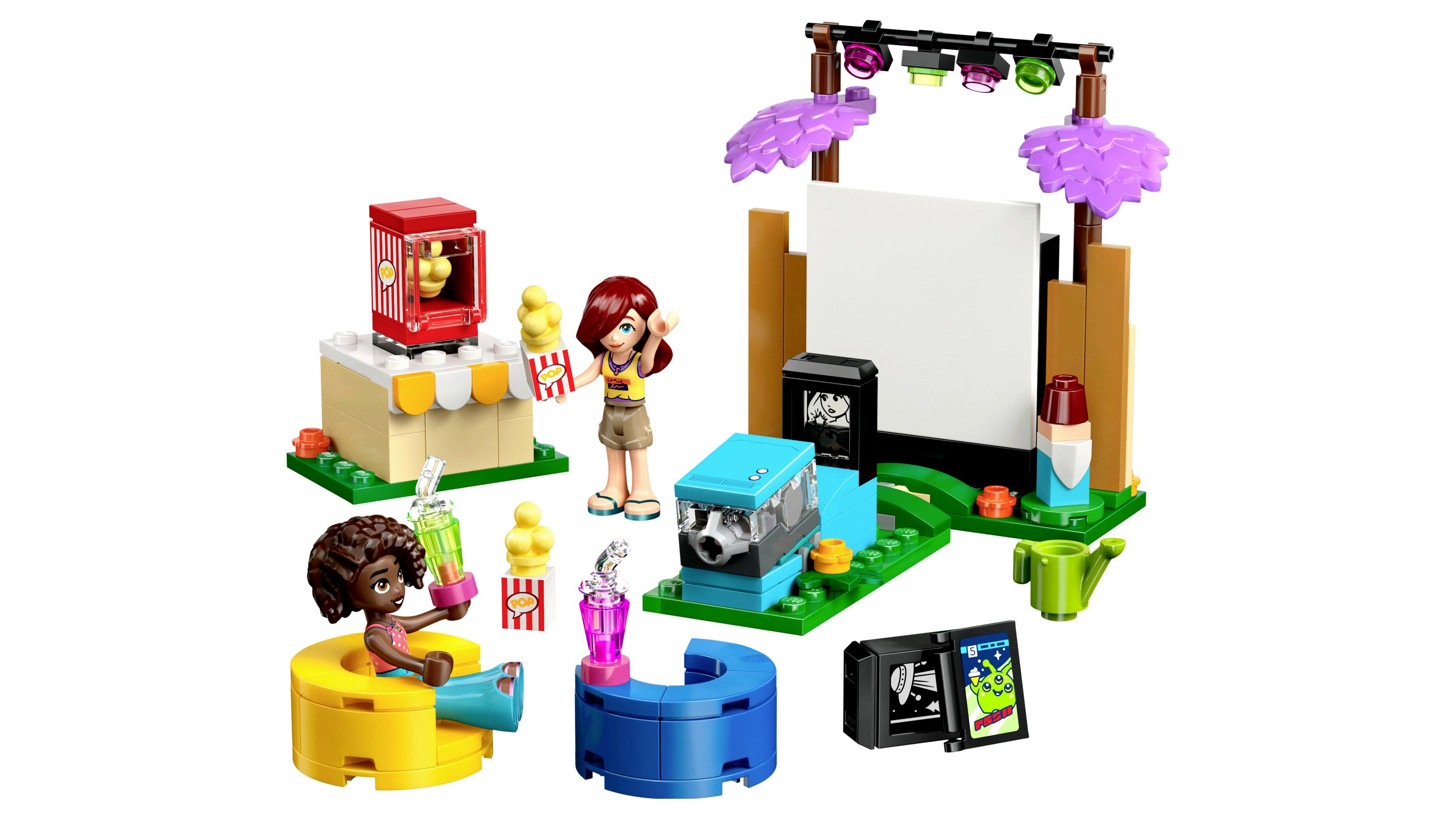 - 2 LEGO® Friends szereplő – Ehhez a történetmesélős játékhoz tartozik Paisley és Aliya minibabafigurái is, akik különféle társas szituációk eljátszására biztatják a gyerekeket, miközben filmet néznek Paisley kertjében