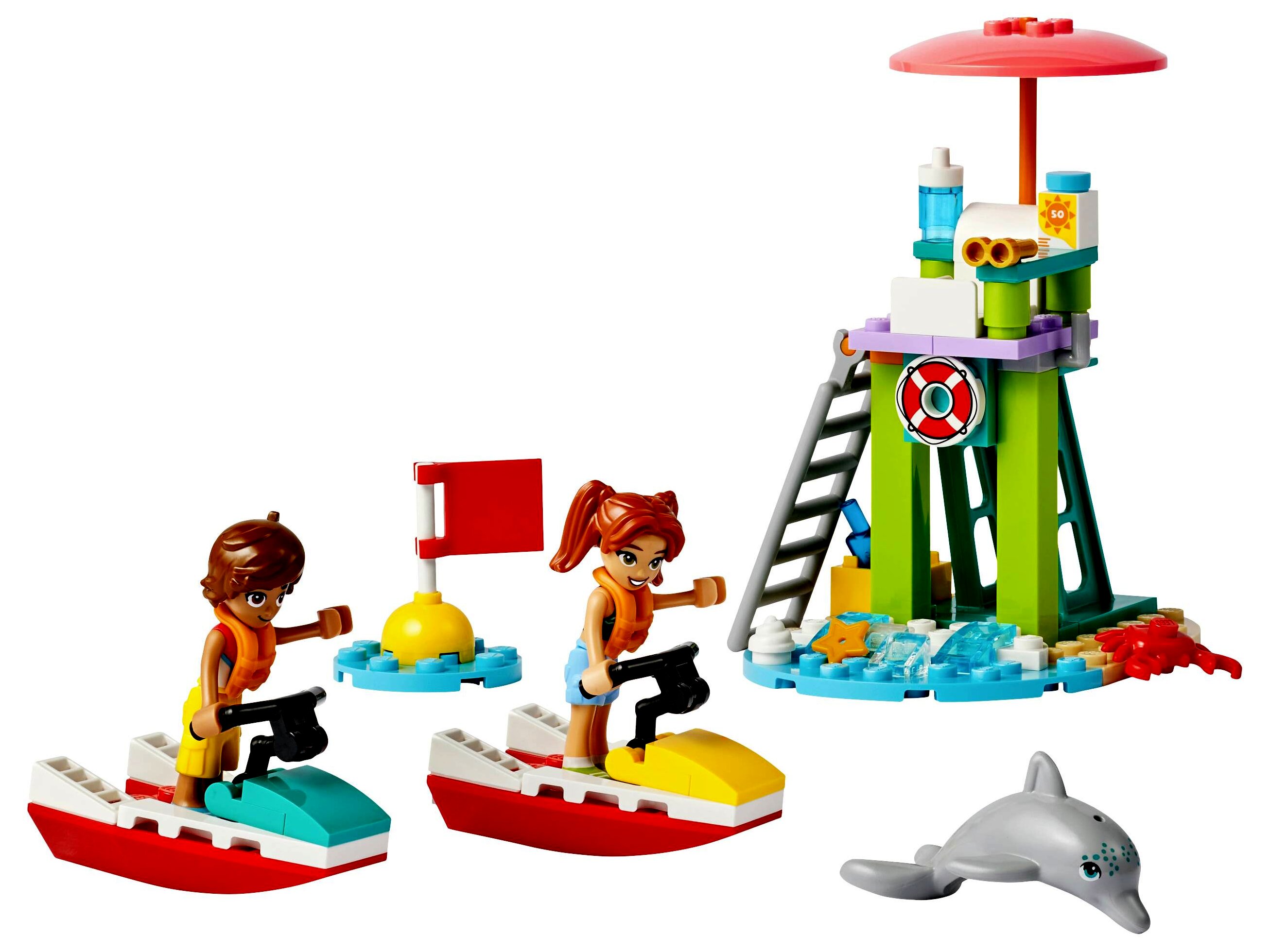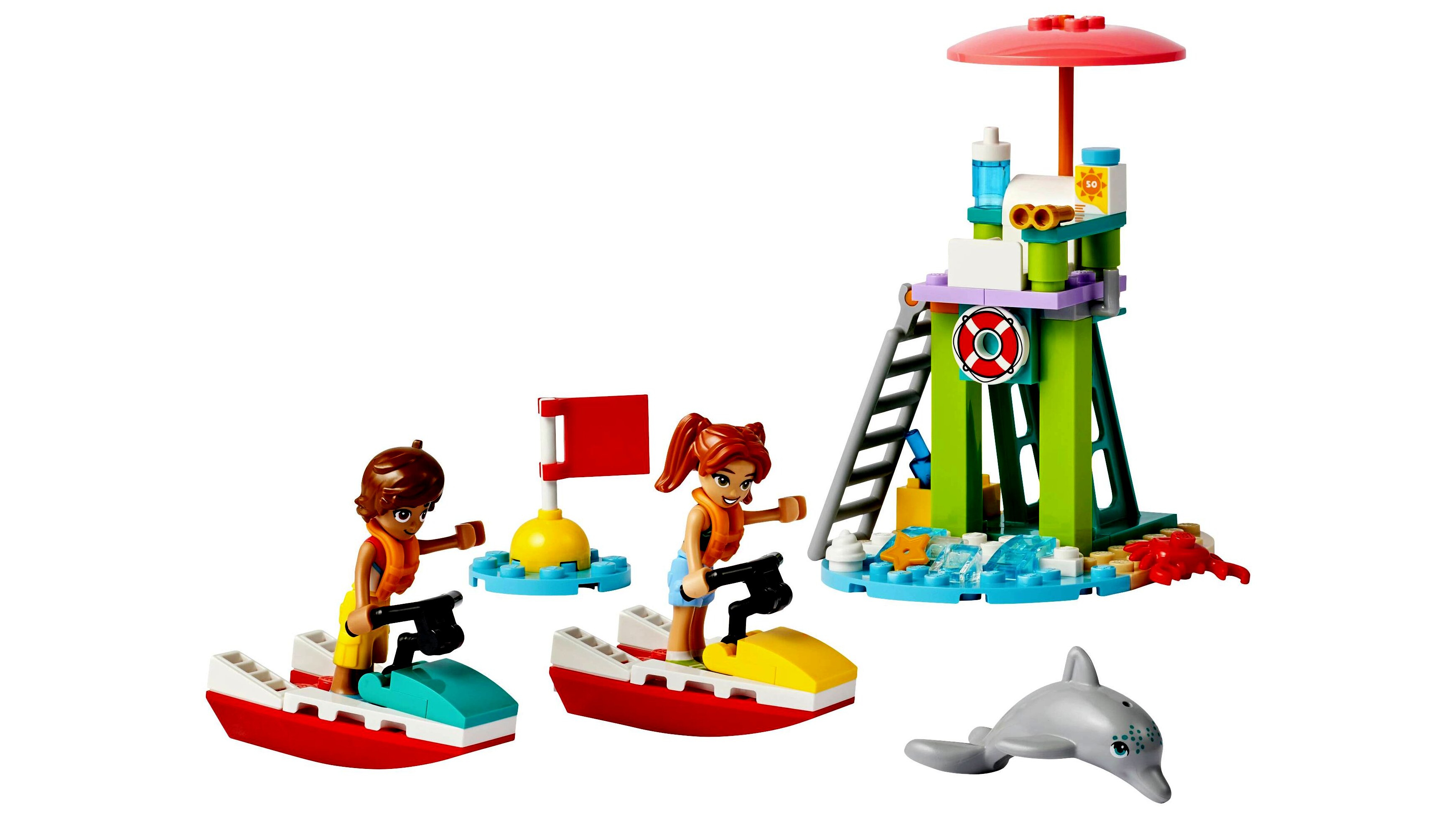 Ehhez az úszómesteres LEGO szetthez 2 vízi robogó kiegészítő tartozik, hogy a gyerekek eljátszhassák a történetet. Leo ma úszómesteri ügyeletet tart, és a távcső segítségével figyeli az óceánt. Ez tökéletes hely arra is, hogy delfineket láss. Később csatlakozik Candihez és a többi barátjához, hogy versenyezzenek a vízi robogókon. Vigyázz a pimasz kis rákkal, aki meg akarja támadni a hűtőt, hogy jégkrémet szerezhessen!
