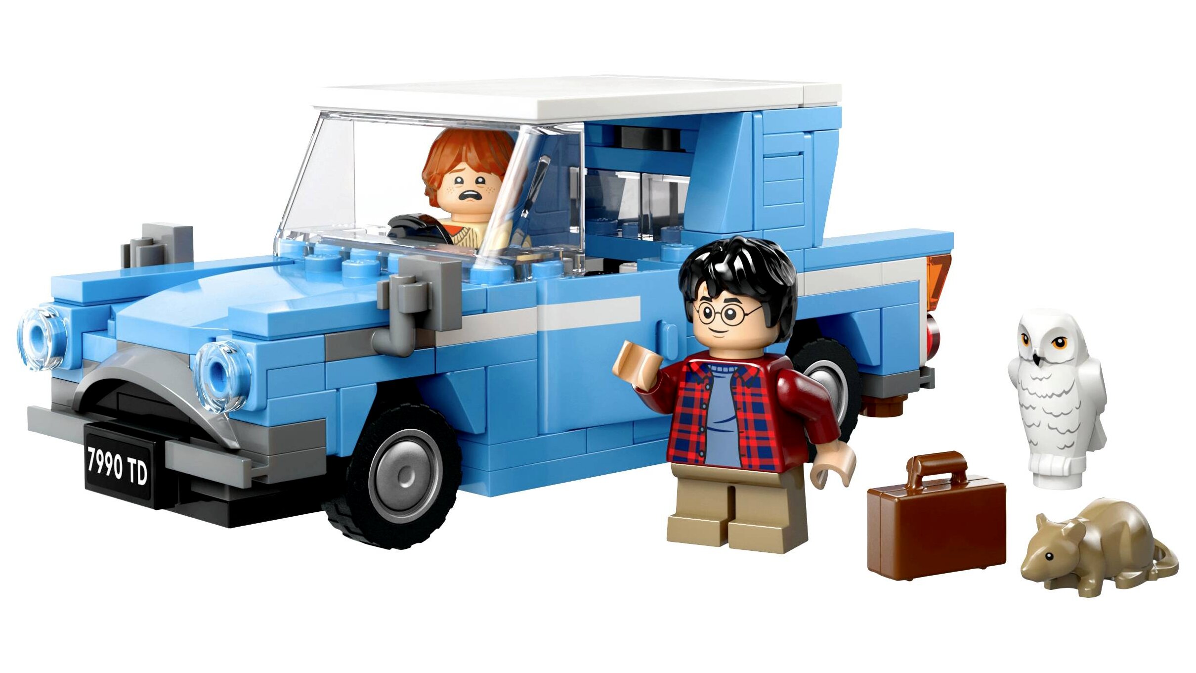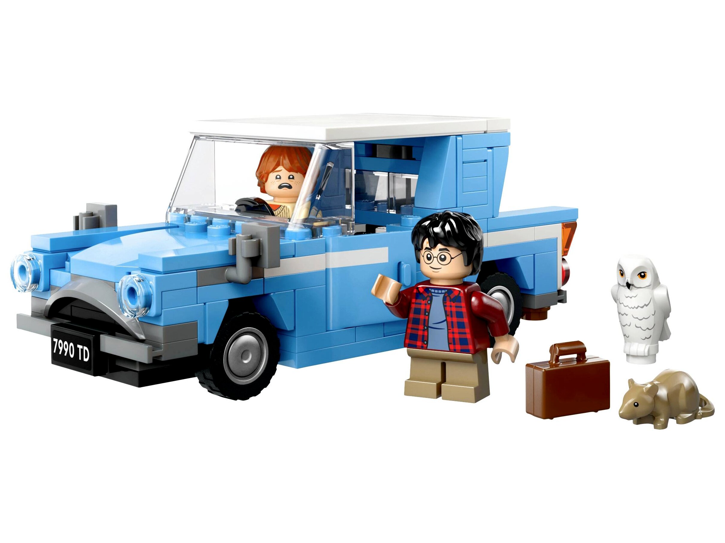 - Ford Anglia játékautó – Nyitható ajtókat, levehető tetőt és üléseket tartalmaz a 2 minifigura számára, az autó hátuljában van hely Hedwig™ számára, és a csomagtartó is felnyitható, ahol van hely a bőröndnek, a varázspálcáknak és Makesznek