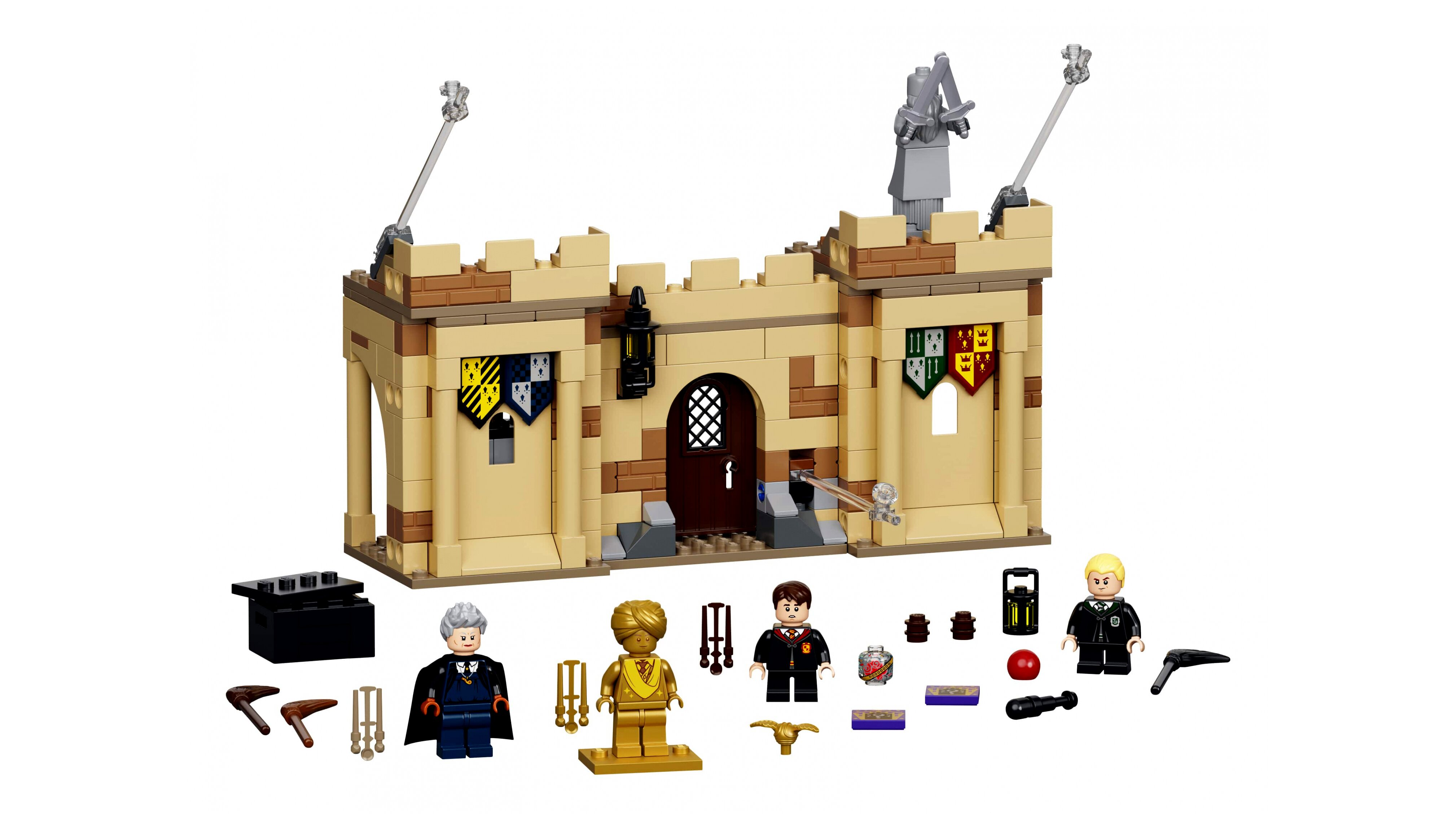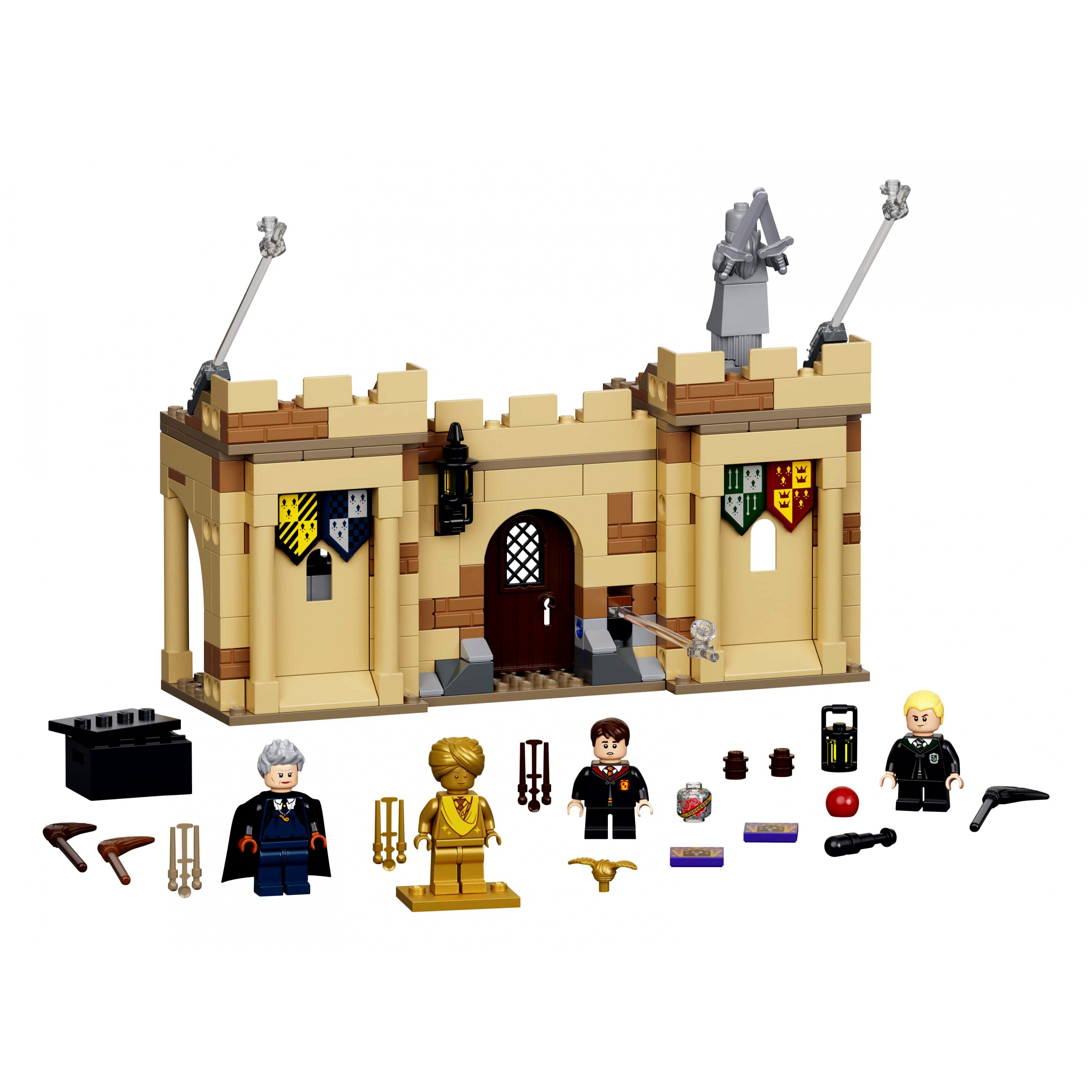 - Tartalmazza Neville Longbottom™, Draco Malfoy™ és Madam Hooch minifiguráit, valamint 5 megépíthető és átrendezhető modult, köztük egy Kviddics trófeatermet és egy tárolóhelyiséget a felszereléseknek.
