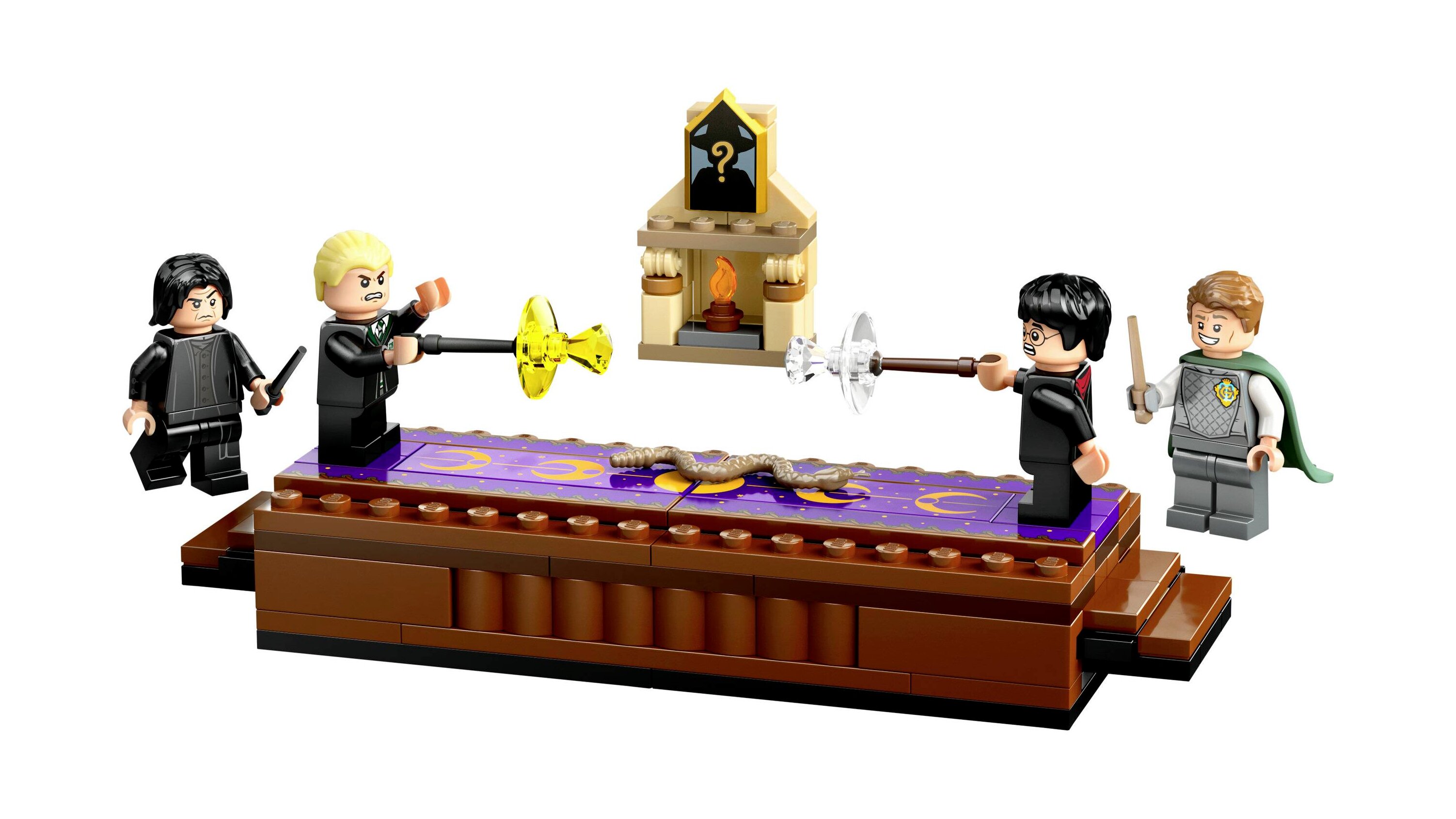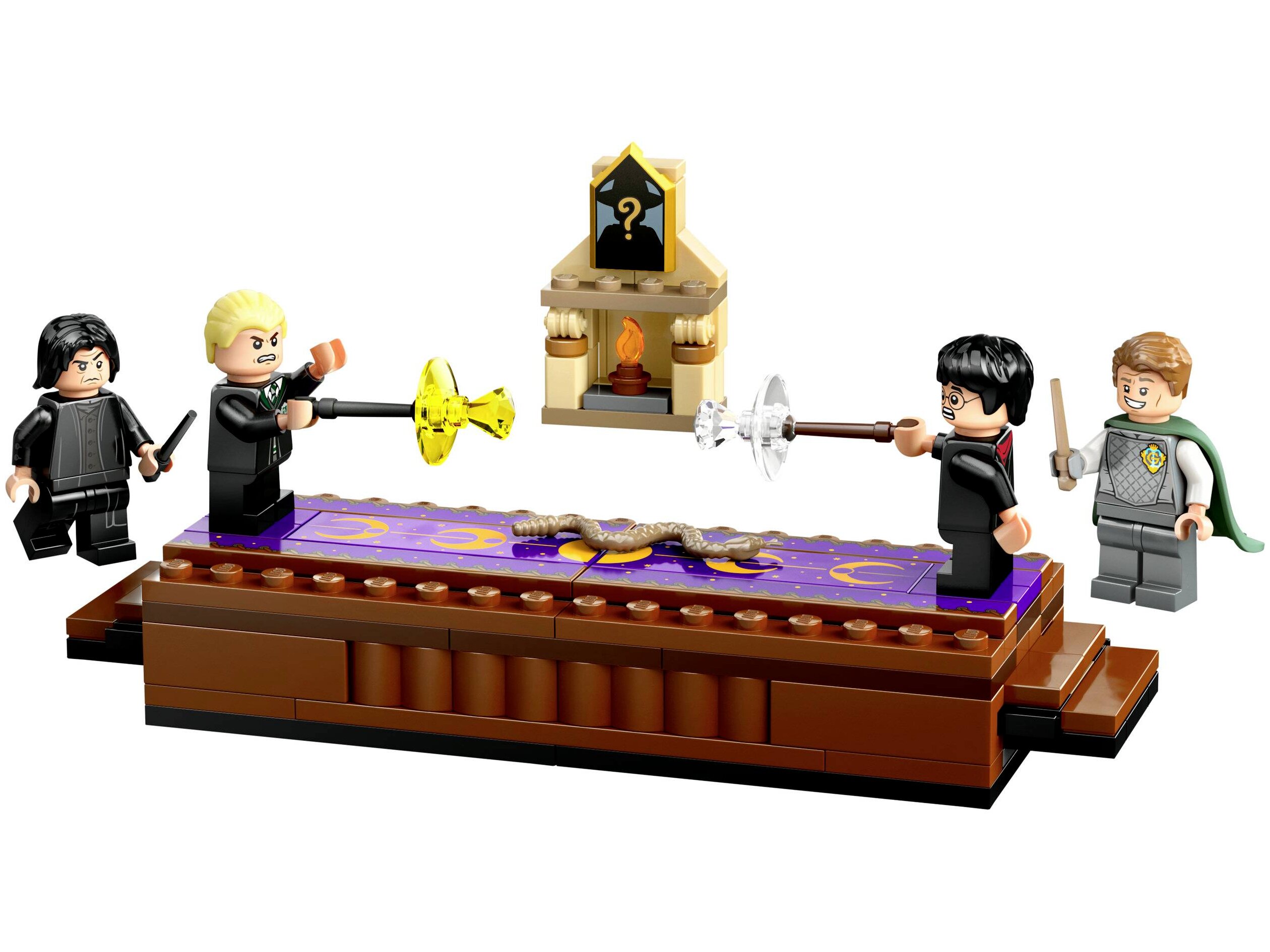 - Gyűjthető LEGO® Harry Potter™ szettek – Ez a varázslópárbaj része azoknak a moduláris készleteknek (külön kaphatók), amelyek összekapcsolhatók, hogy meg lehessen építeni az eddigi legrészletesebb, LEGOkockákból épült Roxfort™ kastély jelenetet