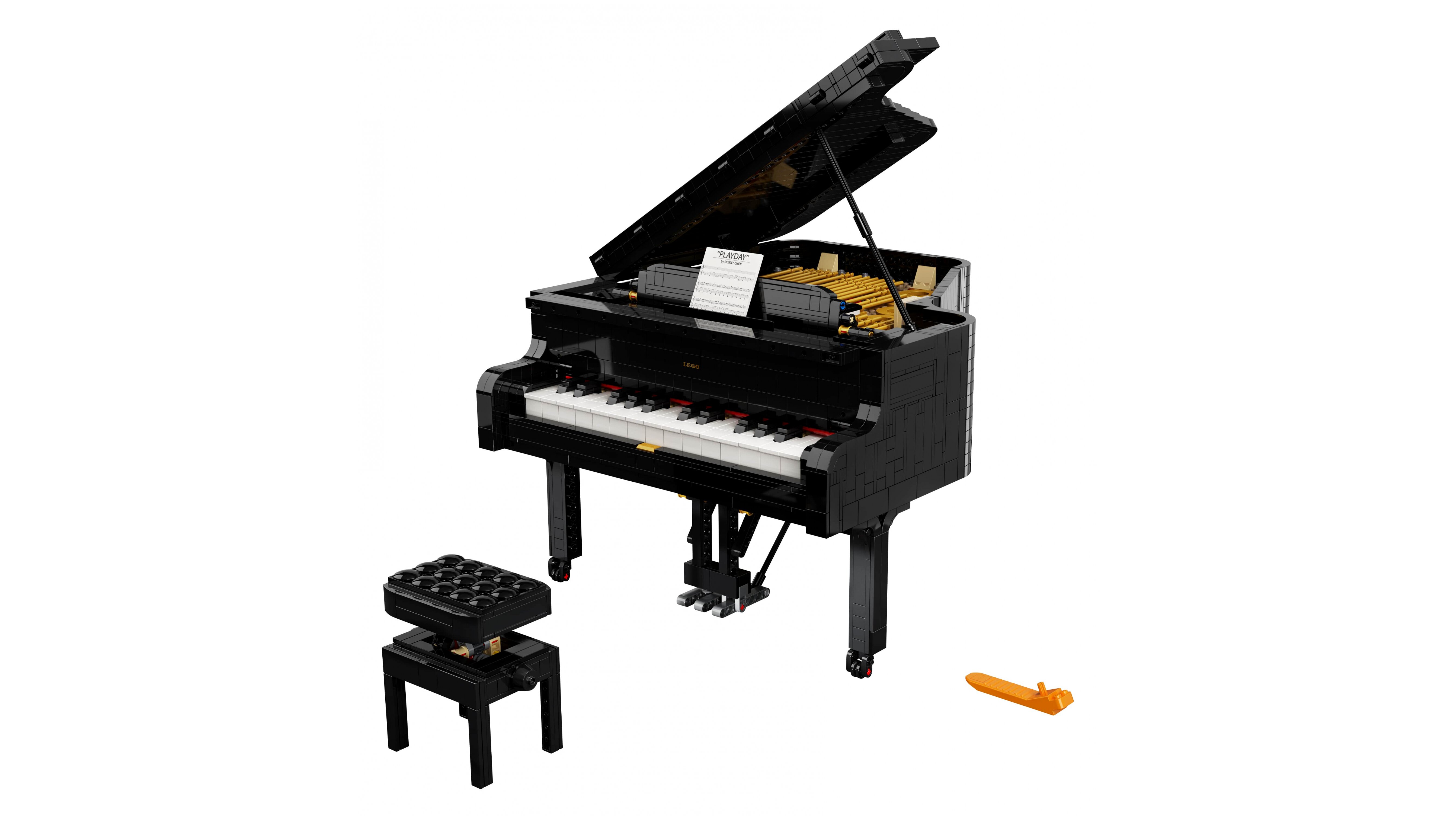 - A LEGO® Ideas Nagy zongora (21323) 25 levehető, eredeti kalapácsmechanikás billentyűvel, mozgó hangfogókkal és pedállal, valamint egy motorral van ellátva. A LEGO Powered Up alkalmazással kombinálva lejátszhatod saját dallamaidat vagy az automata zenéket.