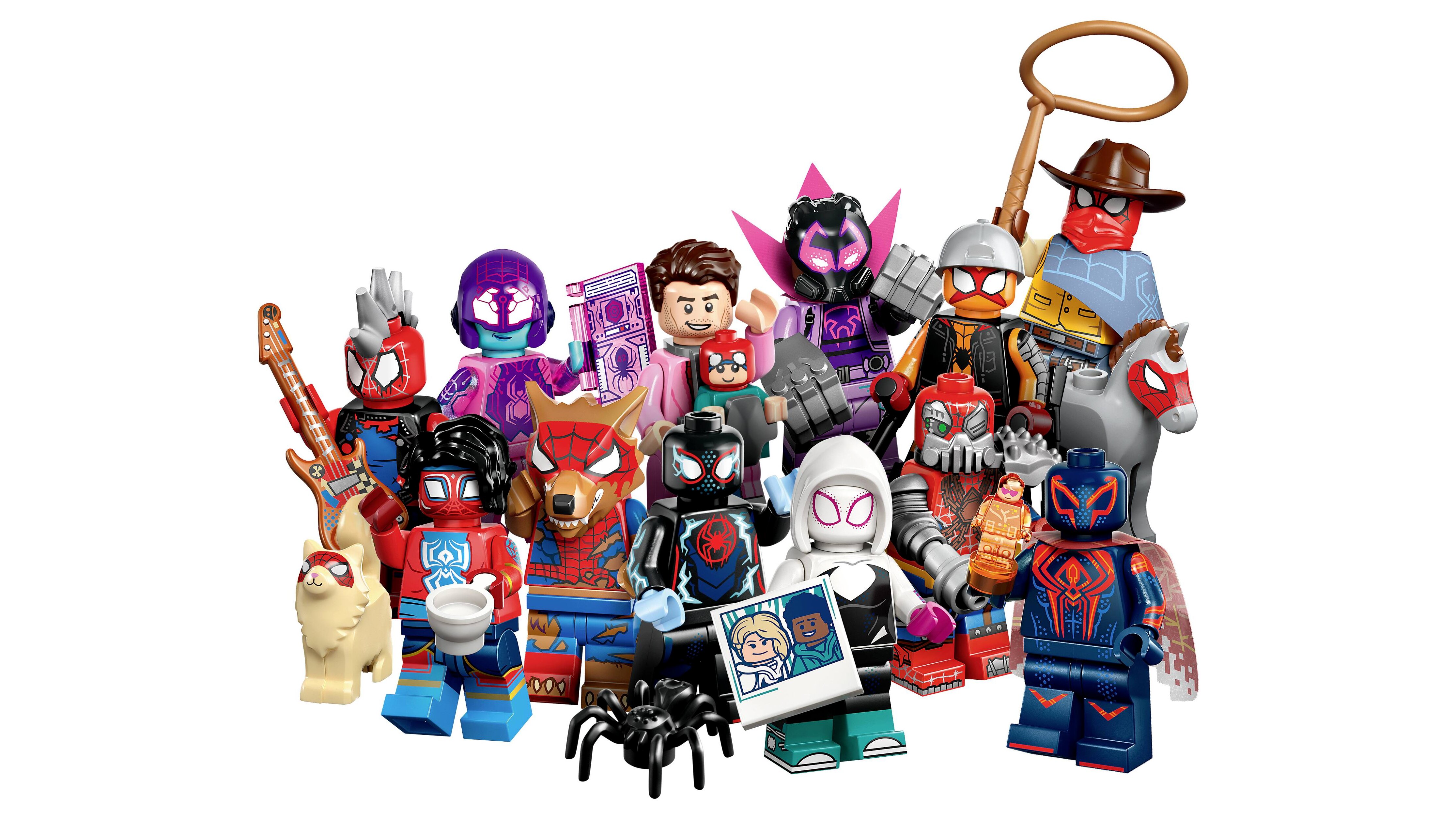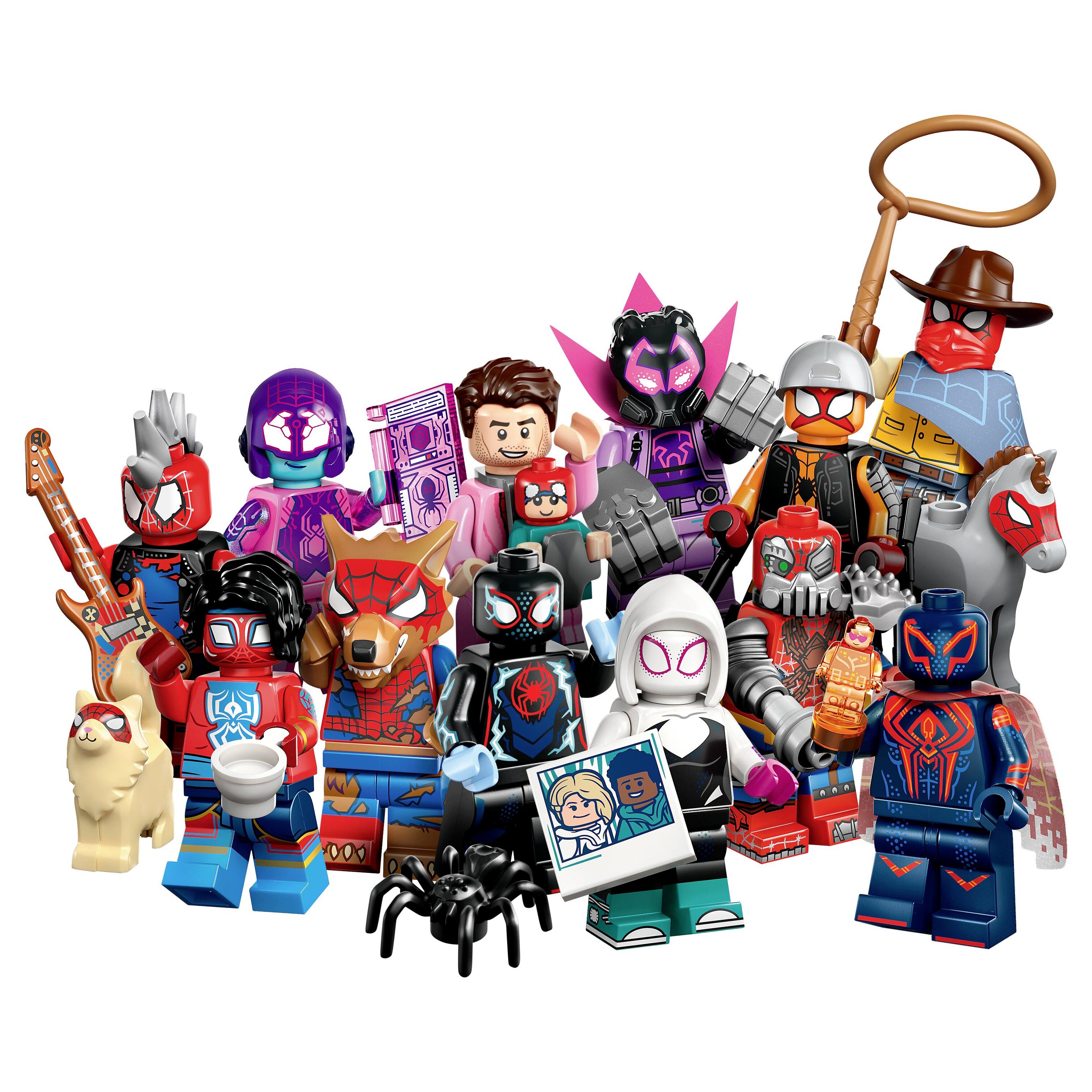 Mindegyik doboz egy gyűjthető és megépíthető Pókember-minifigurát rejt az összesen 12 figura közül: Miles Morales/Pókember, Miguel O’Hara/Pókember 2099, Gwen Stacy/Pók-Gwen, Hobie Brown/Spider-Punk, Pavitr Prabhakar/Spider-Man India, Miles G. Morales/Prowler, Peter B. Parker/Spider-Man és May “Mayday” Parker, Margo Kess/Spider-Byte, Peter Parker/Werewolf Spider-Man, Patrick O’Hara/Web-Slinger, Petra Parker/Cyborg Spider-Woman és Charlotte Webber/Sun-Spider